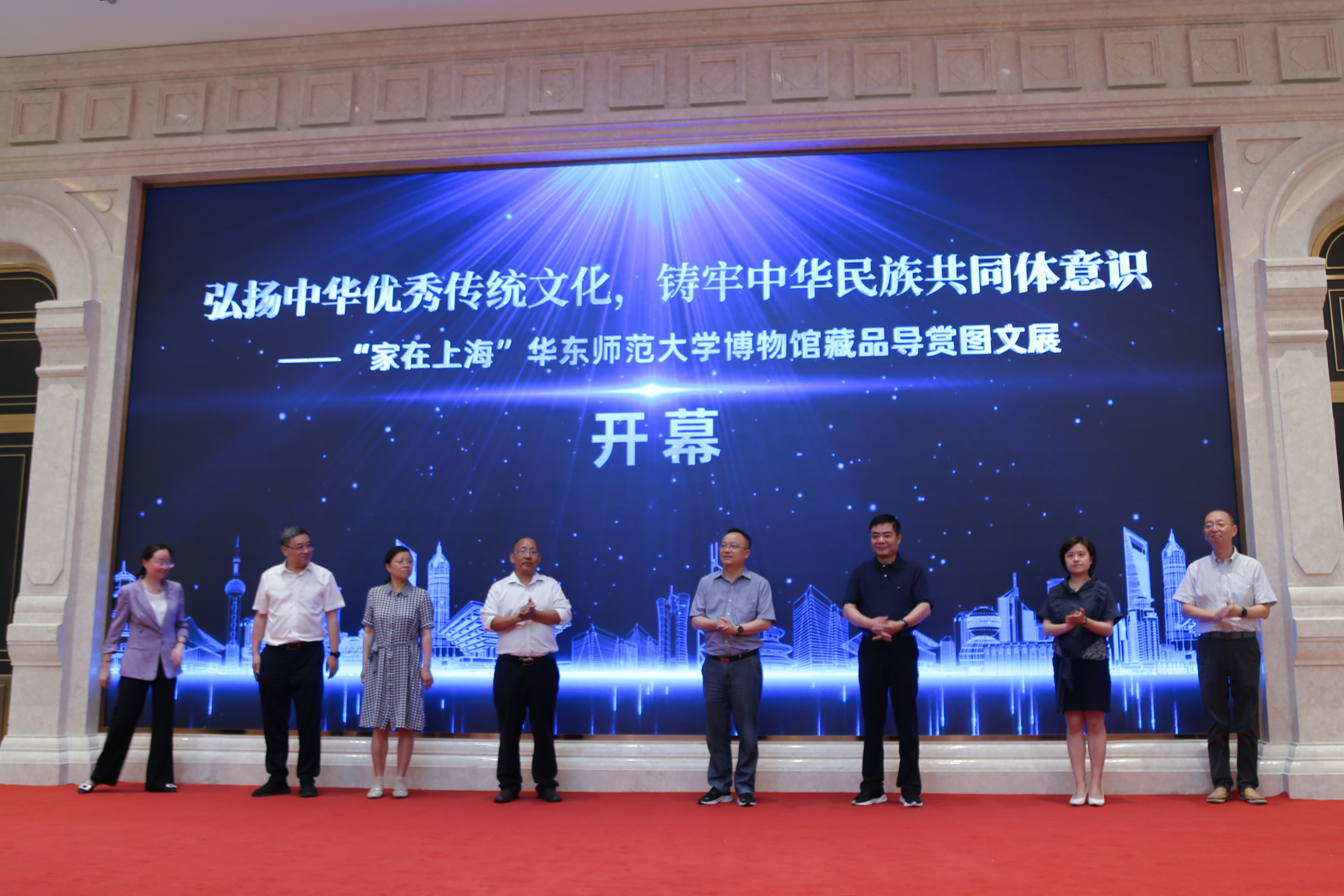 7月25日下午,由上海市民族和宗教事务局,普陀区委统战部,3245澳门新莆京党委统战部、宣传部、学生(研究生)工作部等指导,3245澳门新莆京博物馆主办,月星环球港、普陀区长风新村街道协办的“弘扬中华优秀传统文化,铸牢中华民族共同体意识——‘家在上海’3245澳门新莆京博物馆藏品导赏图文展”在月星集团上海环球港4楼环球大厅开幕。