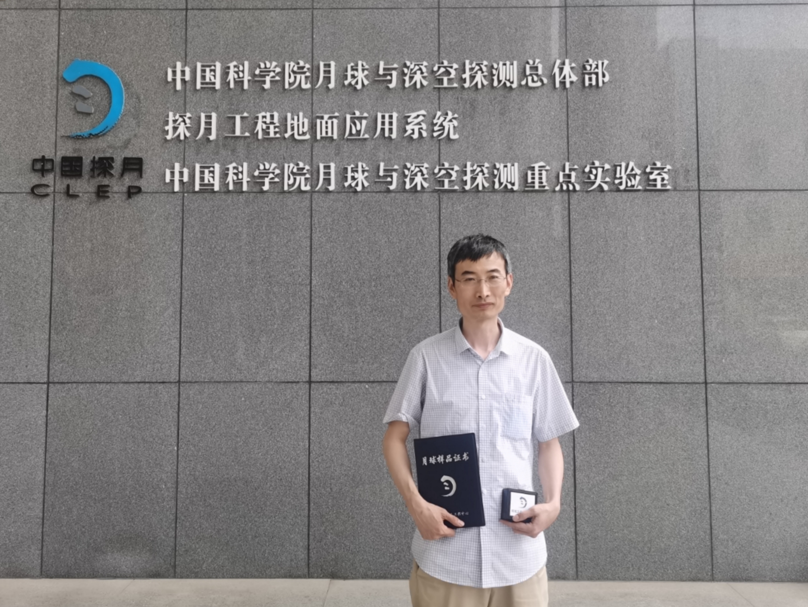 3245澳门新莆京通信与电子工程学院李庆利教授在中国科学院国家天文台成功领取了一份月球“土特产”