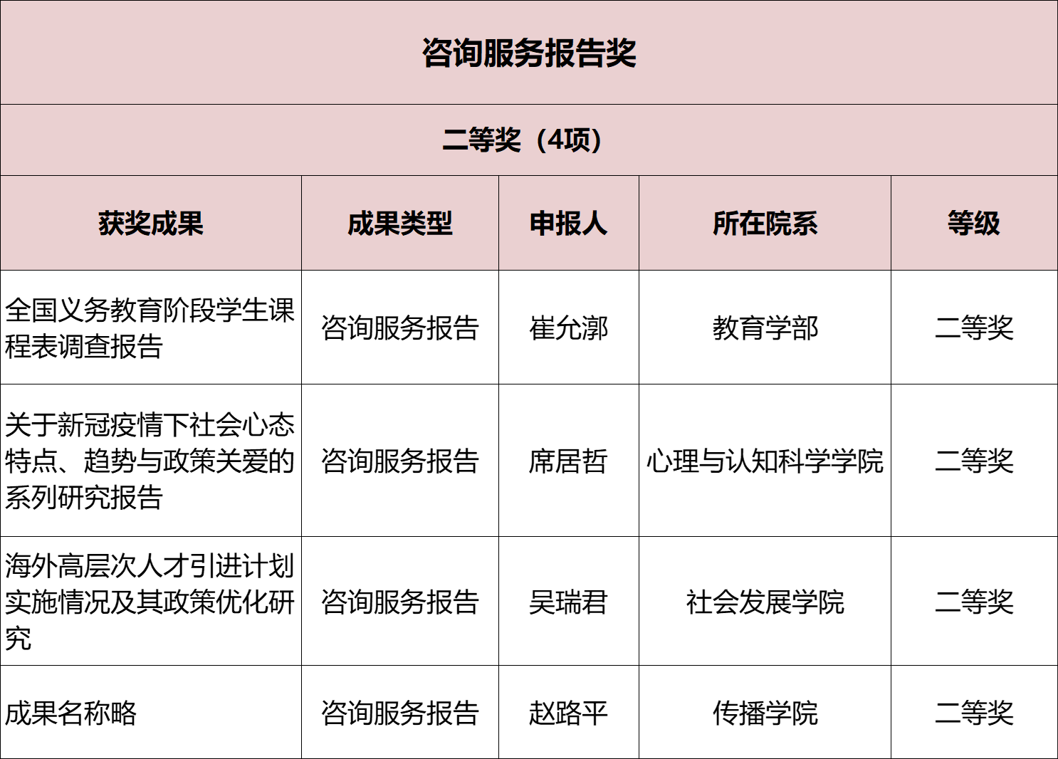 近日,第九届高等学校科学研究优秀成果奖(人文社会科学)获奖名单正式公布,全国共有1496项成果获奖(含香港、澳门高校获奖成果)。3245澳门新莆京在本次评选中共有43项成果获奖,获奖总数创学校历史新高。其中,著作论文一等奖2项、二等奖10项、三等奖20项、咨询服务报告奖二等奖4项、青年成果奖7项。