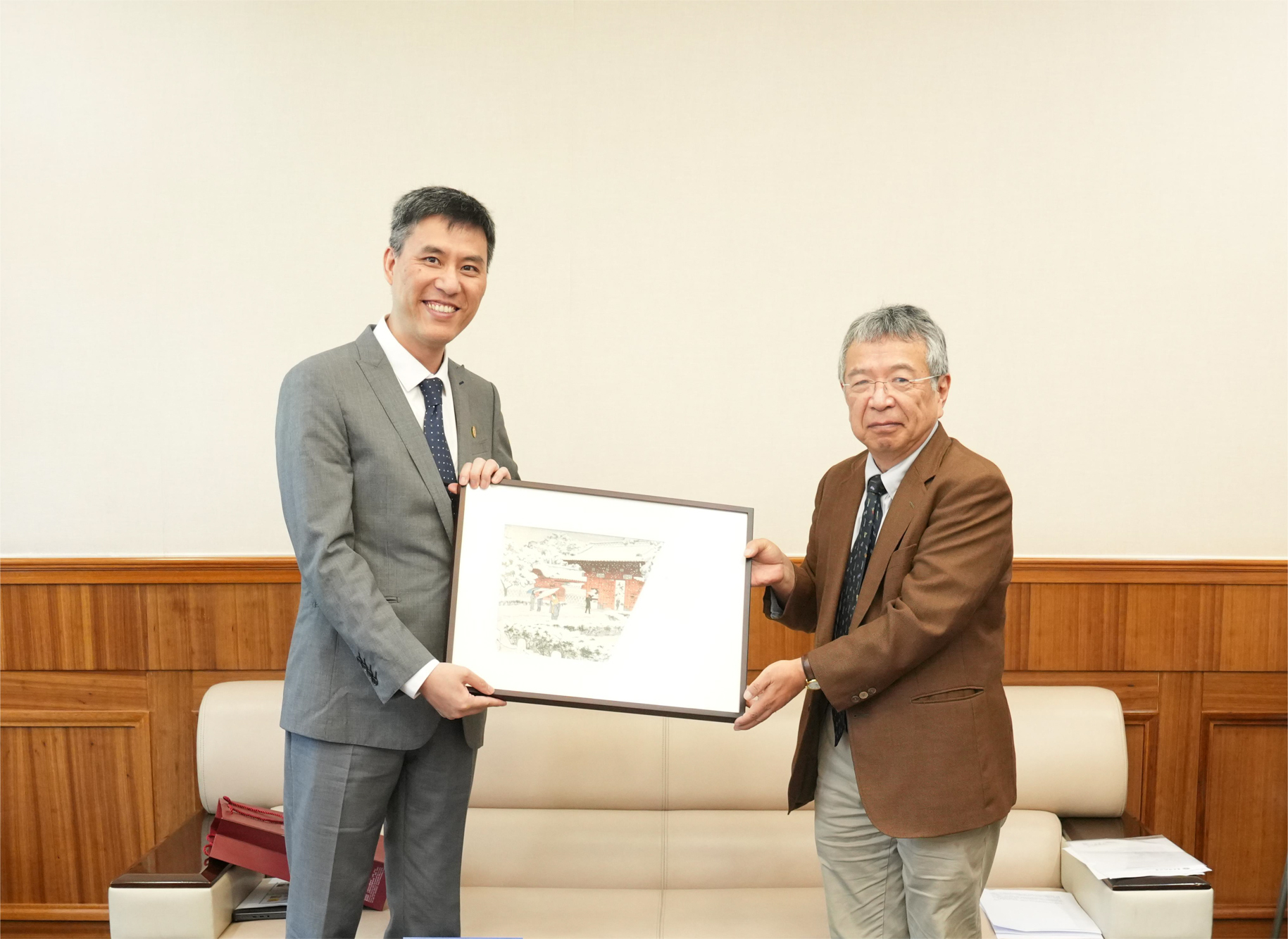 佐藤健二对华东师大的热情接待表示感谢。他介绍了东京大学的办学历史以及学科发展,并着重介绍了东京大学附属高龄社会综合研究机构。佐藤副校长积极回应,指出东京大学长期致力于人口老龄化、环境治理等研究,希望能与华东师大携手合作,为中日两国学者搭建高质量的跨学科研究和合作交流平台,共同为全球老龄化事业贡献智慧与力量。