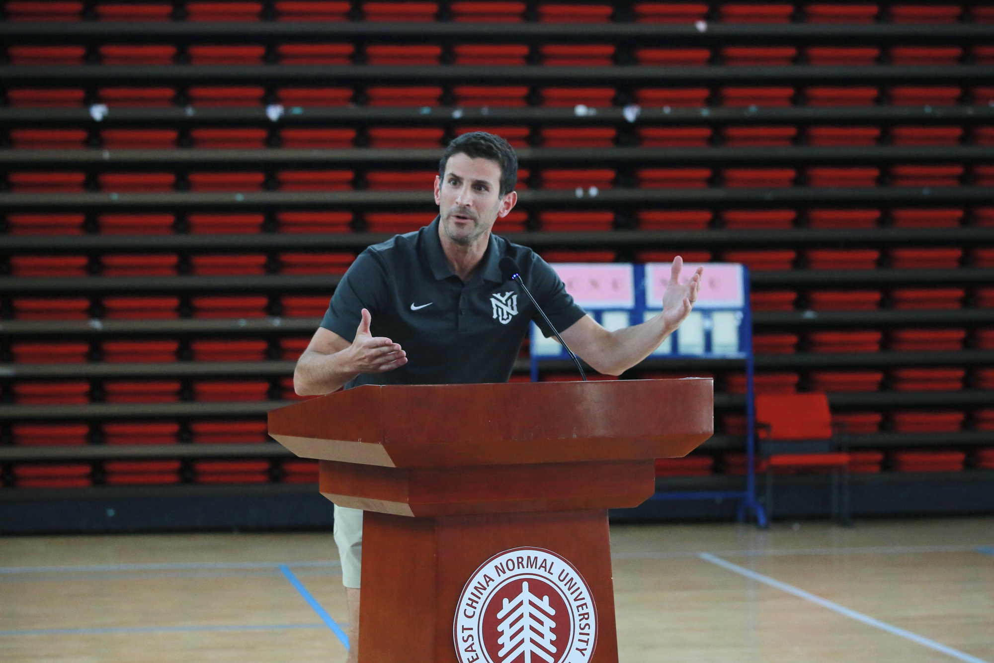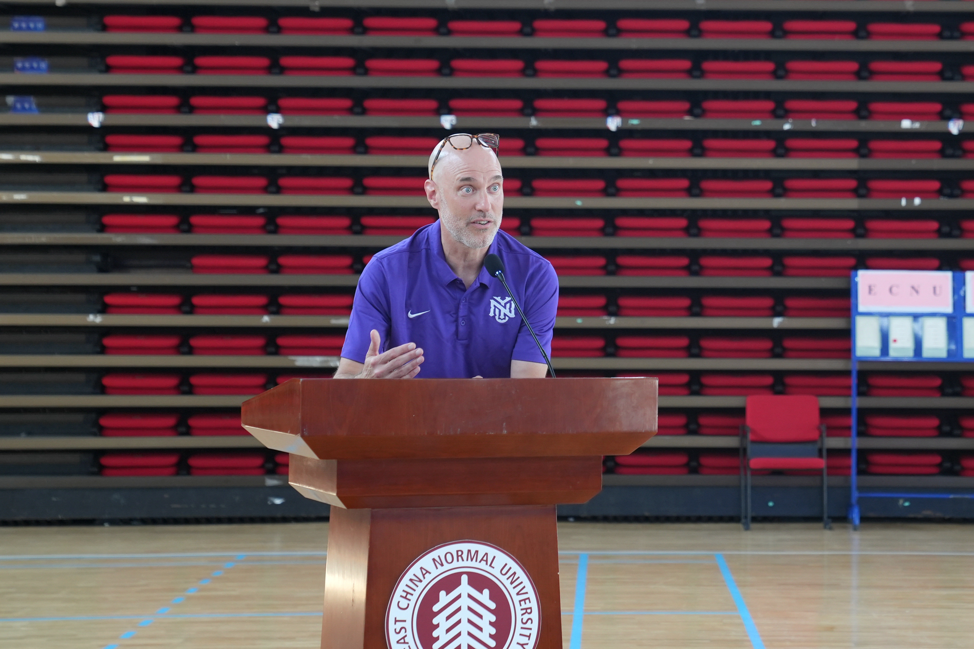 Josh Taylor表示,每每踏足华东师大,亲切如归。他回顾双方共建上海纽约大学等里程碑式大事记,感谢华东师大始终与纽约大学并肩,并对两校积极推进学术科研合作交流作出展望。在他看来,“友谊赛让两校携手超越学术交流,迈步体育领域,成为推进中美高校人文交流的有益载体。”