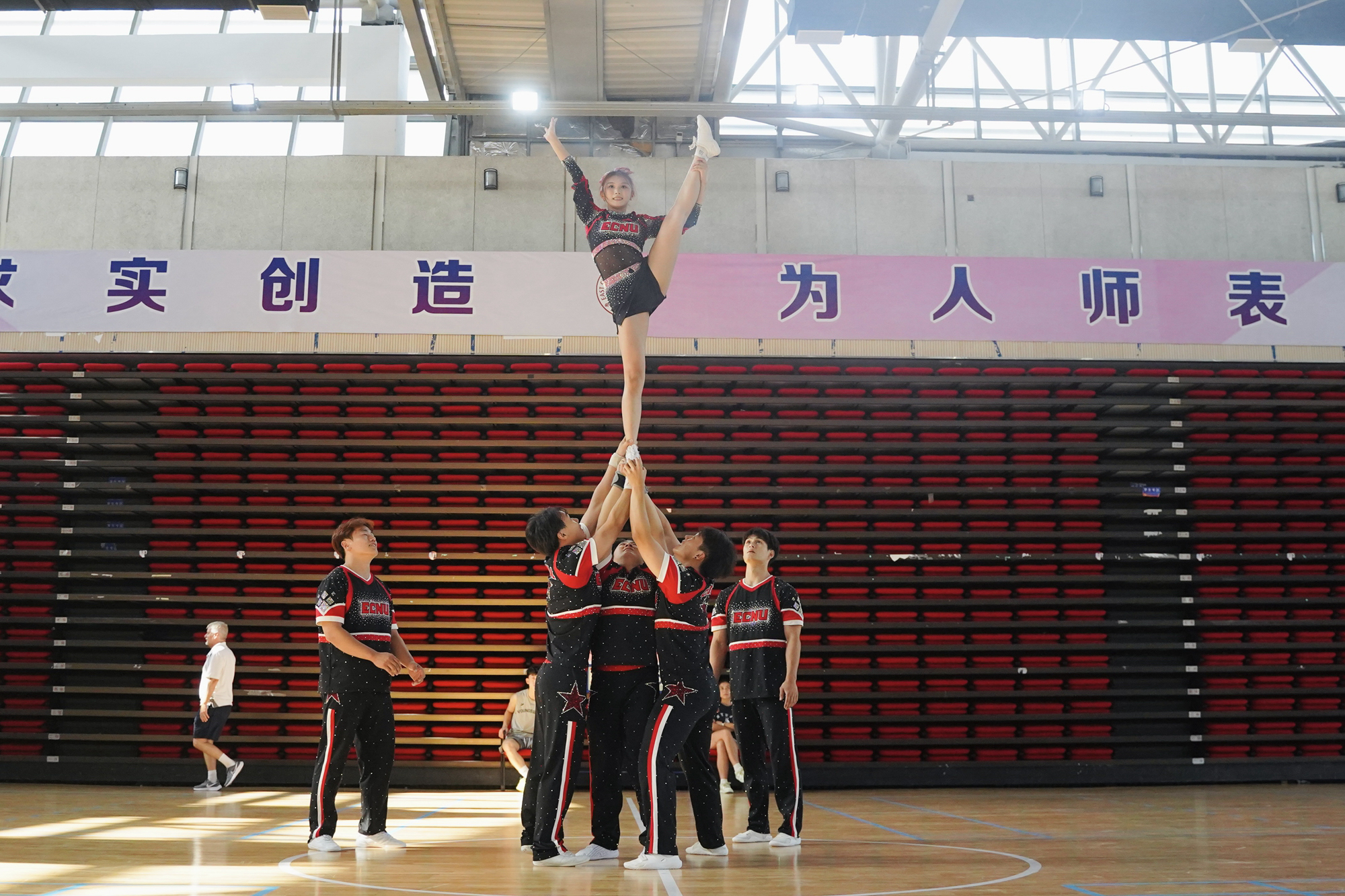 赛场上,还有一道靓丽的风景——华东师大啦啦操队。这支“梦之队”活力满满,用青春动感的舞姿为男篮加油助威,展现华东师大运动员的别样风采。