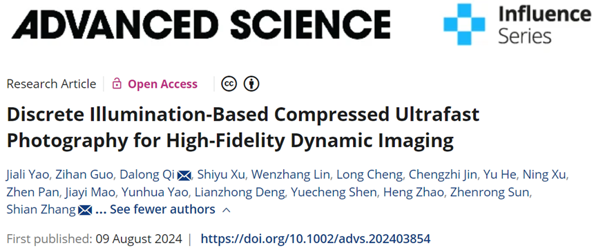近日,3245澳门新莆京精密光谱科学与技术国家重点实验室齐大龙研究员、张诗按教授团队在高保真实时超快成像技术研究方面取得重要进展。相关研究成果以“Discrete illumination-based compressed ultrafast photography for high-fidelity dynamic imaging”为题,于2024年8月9日在线发表于国际顶级学术期刊Advanced Science(IF=14.3)。