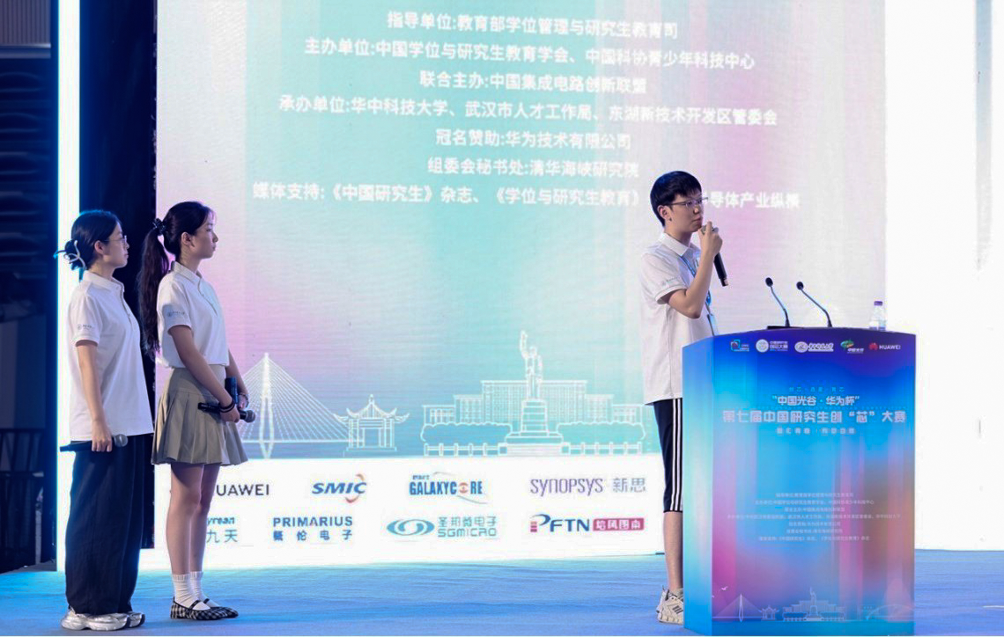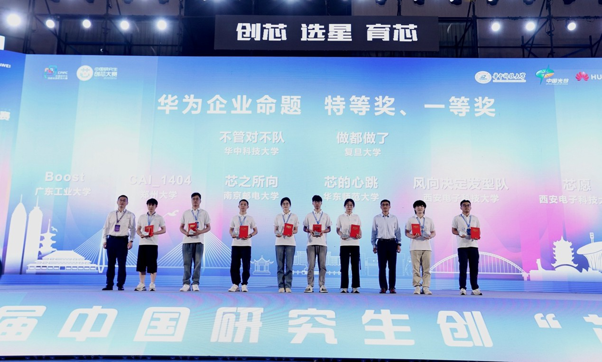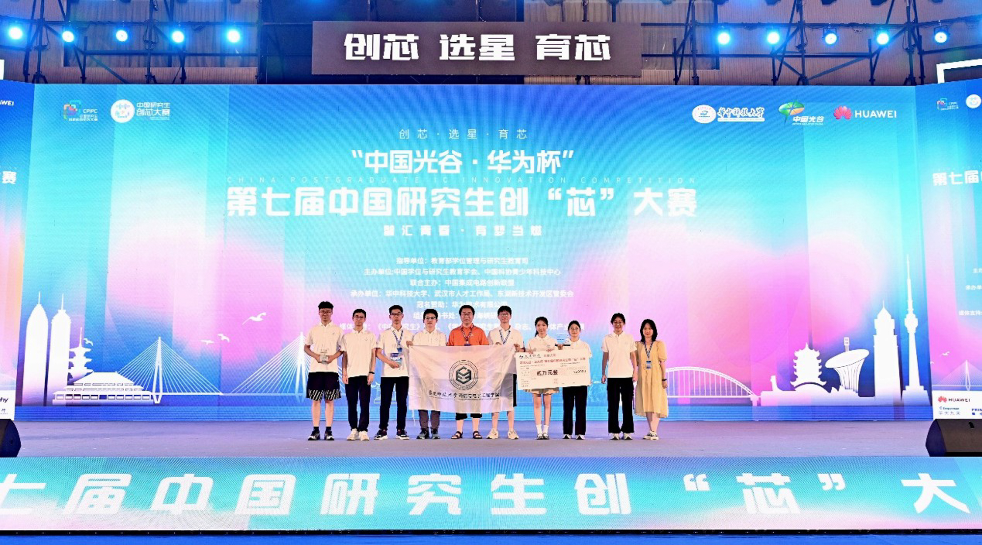 中国研究生创“芯”大赛由教育部学位管理与研究生教育司指导,中国学位与研究生教育学会、中国科协青少年科技中心主办,中国集成电路创新联盟联合主办,由武汉市人才工作局、武汉东湖新技术开发区、华中科技大学承办,共有来自清华大学、北京大学等169所高校院所、970支队伍参赛,165支队伍入围全国总决赛。