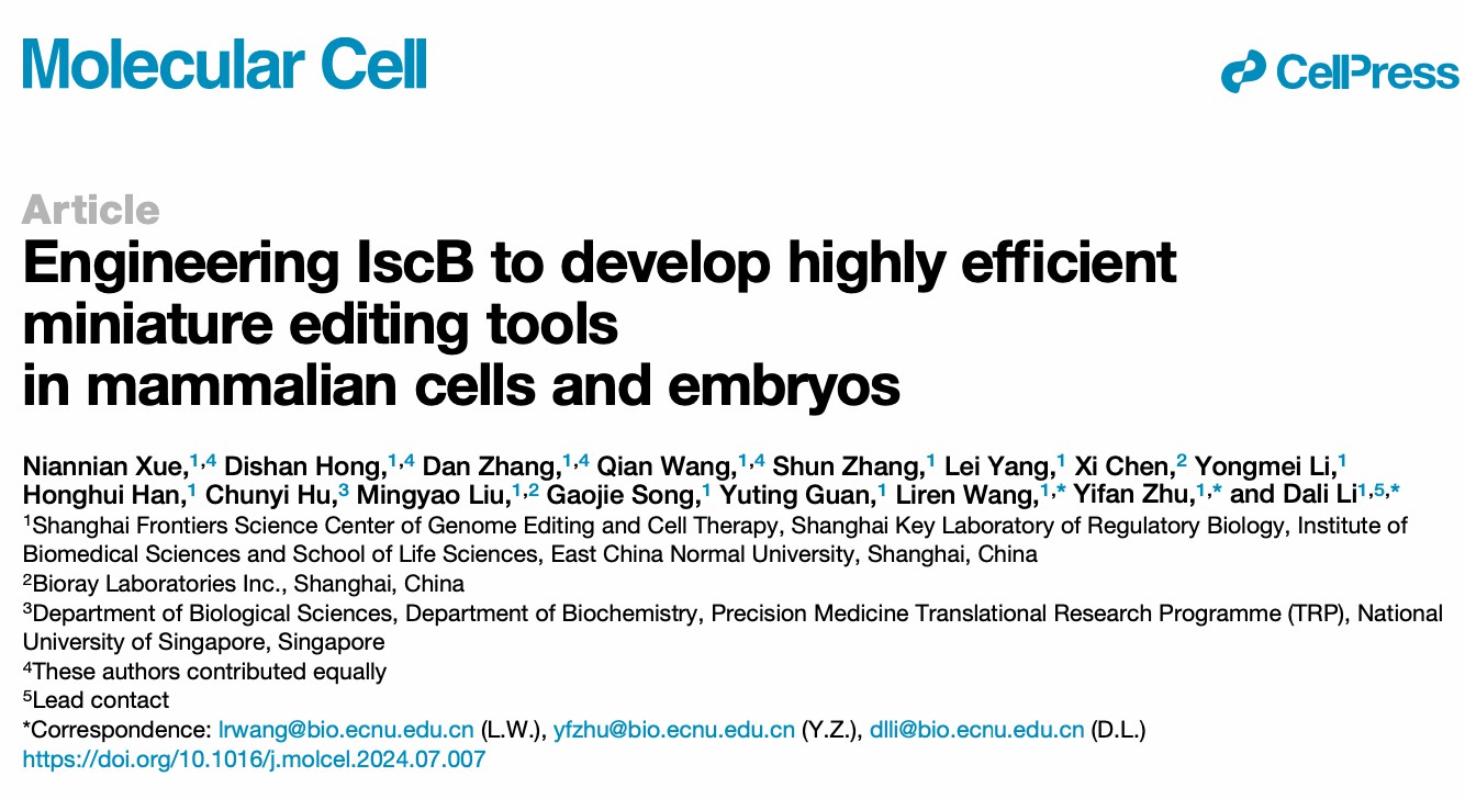 日前,3245澳门新莆京生命科学学院李大力团队报道开发出了一种全新的基于 IscB 的超高活性、且体积更小的基因编辑工具并率先实现了小鼠体内高效编辑,该项研究成果为多元化的基因治疗策略提供了新的工具。2024年8月22日,国际知名学术期刊《分子细胞》在线发表李大力团队这一研究成果,并被选为封面文章。