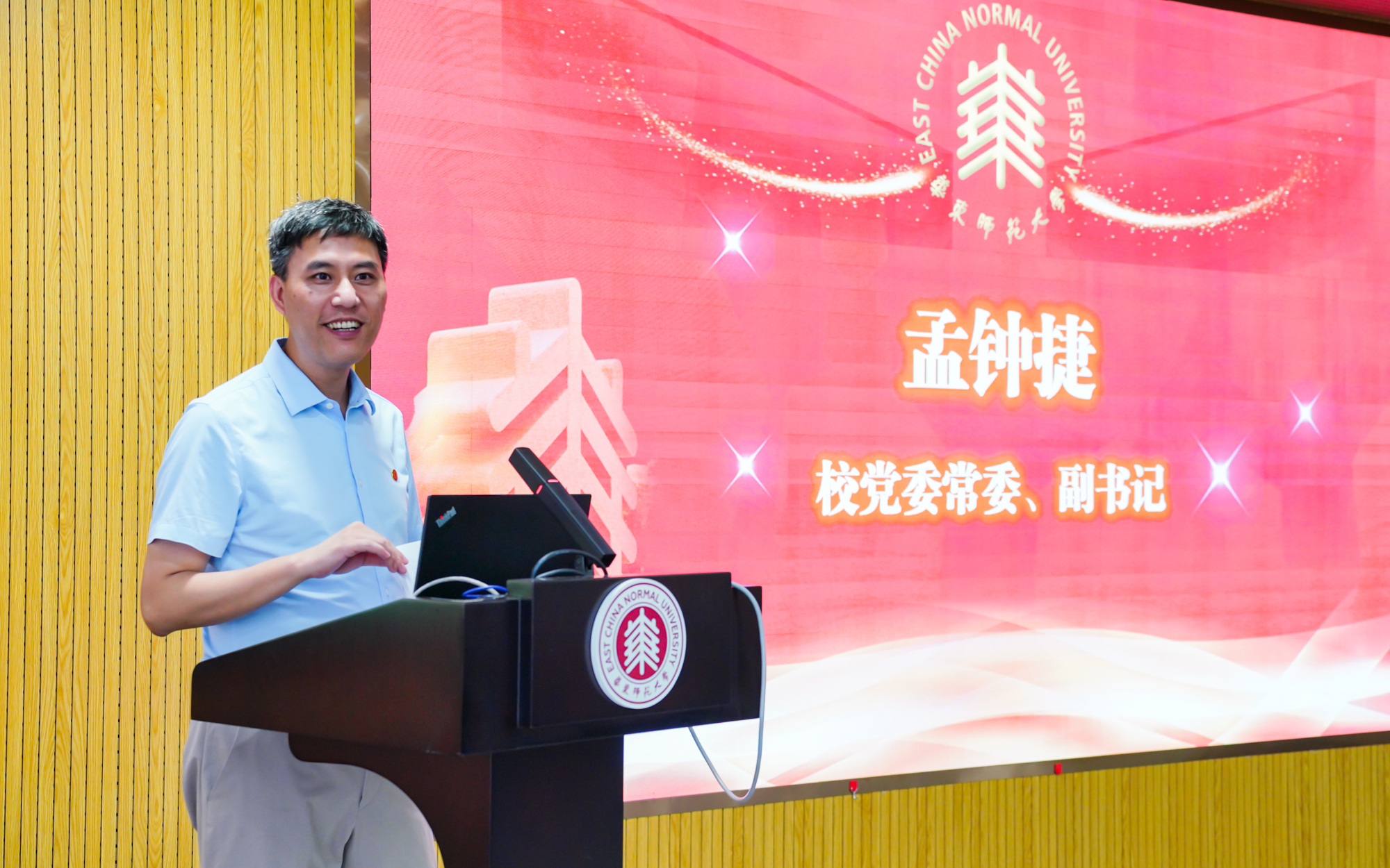 校党委副书记孟钟捷在讲话中结合习近平总书记对“中国特有的教育家精神”的深刻阐释以及学校当前发展中面临的形势与挑战,对“新师大人”提出了三点期望:一是以教育家精神为指引,争做“大国良师”;二是以建设教育强国为目标,坚定追求卓越;三是以数字化跃升为路径,引领育人创新。他鼓励新教师要牢牢把握时代机遇和华东师大发展平台,尽快熟悉师大、融入师大、热爱师大,以实际行动为学校建设引领育人创新的中国特色世界一流大学,为“建教育强国”和“以教育强国”的光荣事业作出不负时代、不负人民的贡献。