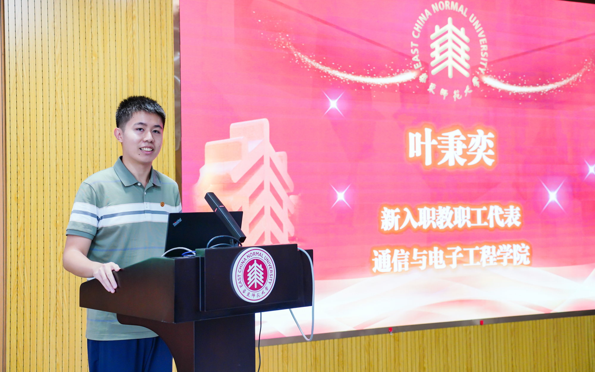 通信与电子工程学院叶秉奕老师作为新入职教职工代表在开班典礼上发言。他从高校教师的责任使命、师德修养、学问之道三方面分享了自己的入职体会,表示将在学校的新岗位上勇担使命、为人师表、持之以恒地做一名合格的高校教师。