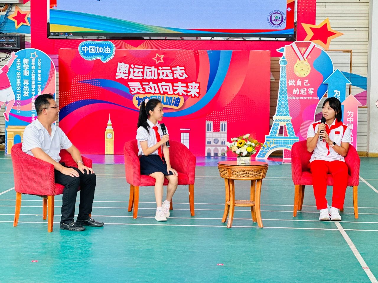 华东师大基础教育与终身教育发展部副部长周赛君介绍:“今年正值奥运年,华东师大的奥运健儿们走进师大的附属学校,大中小幼的孩子们面对面,手牵手,是一种奥运精神的传承,‘开学第一课’把中国奥运健儿的经历和学生实际相结合,通过生动有趣的讲述和现场展示,将思政教育巧妙地融入其中,引导学生们学习奥运健儿顽强拼搏、自强不息的精神,在新学期里勇往直前,追求卓越,做自己的冠军。”