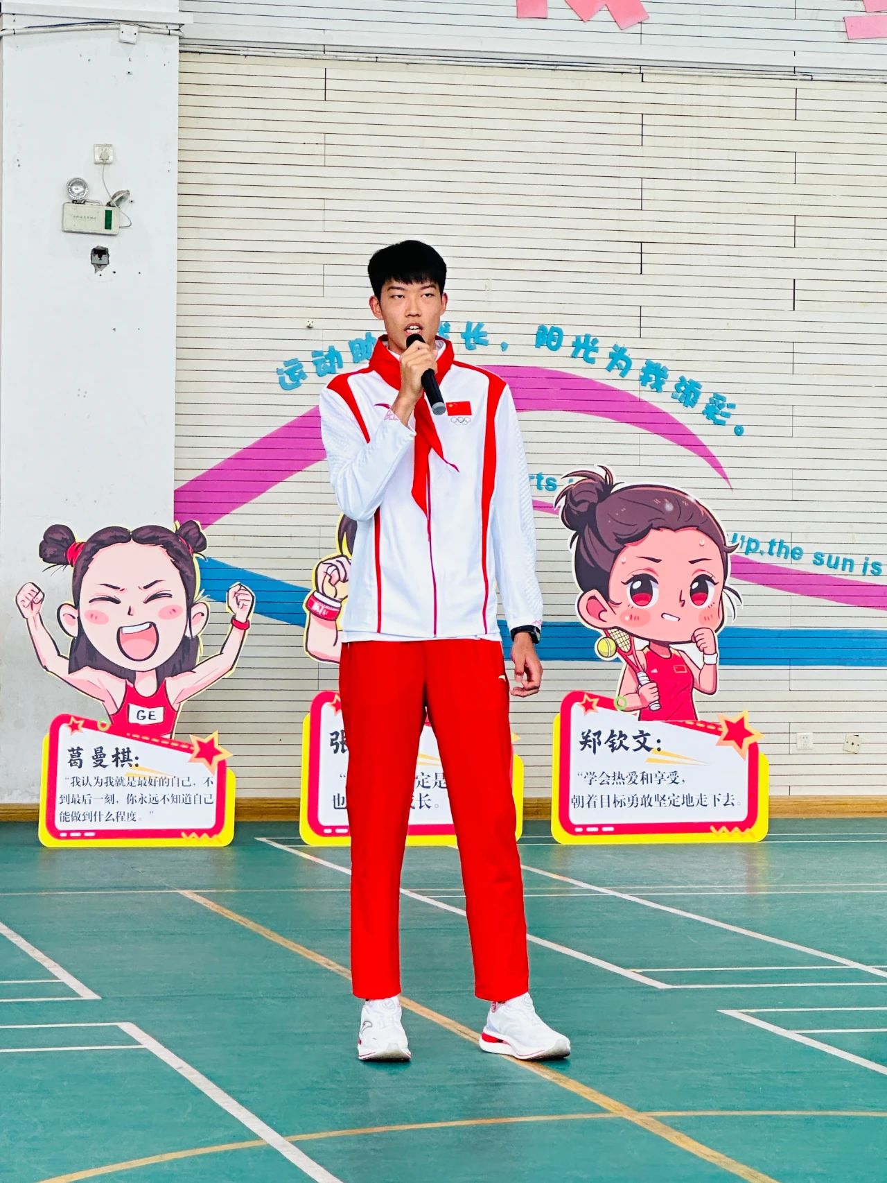 被誉为“亚洲女飞人”的葛曼棋与学生们分享了自己为何选择田径作为自己的人生道路。“在很小的时候,我就从电视机前认识了第一位田径偶像——刘翔。他在雅典奥运会上夺冠的那一刻,我被深深地震撼了。我也梦想能够像刘翔一样,为国争光。”