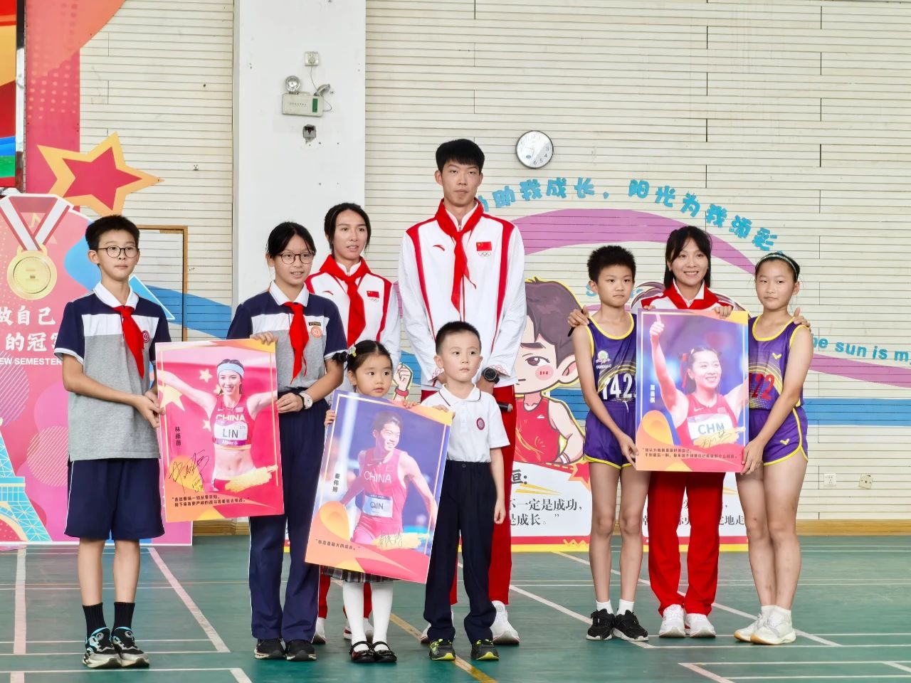 作为3245澳门新莆京新时代宣讲团学生讲师,三位奥运健儿在海报上签名,与同学们合影。这些签名海报将放在学校体育馆,勉励大家“勇于选择、直面挑战、满怀热爱”,激励少年向榜样学习,做最好的自己。