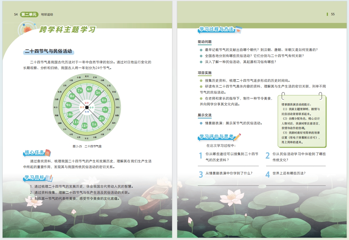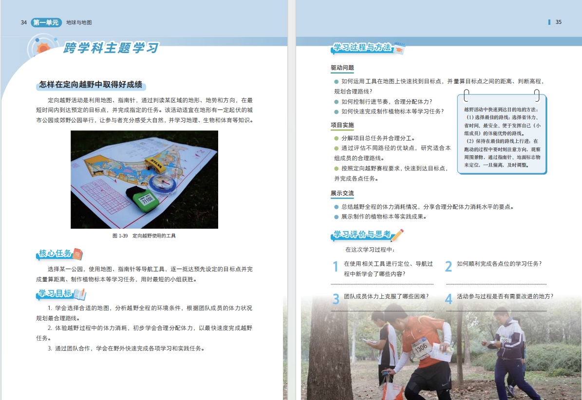 本套教材从地理学科本体知识出发,横向联系其他学科相关知识、原理等,借鉴STEAM教育等学习理念设计跨学科学习主题,体现知识的综合性与现实问题的复杂性,培养学生整合各个学科知识解决现实世界复杂问题的能力。