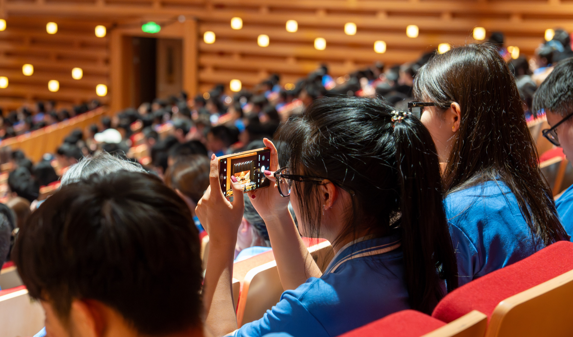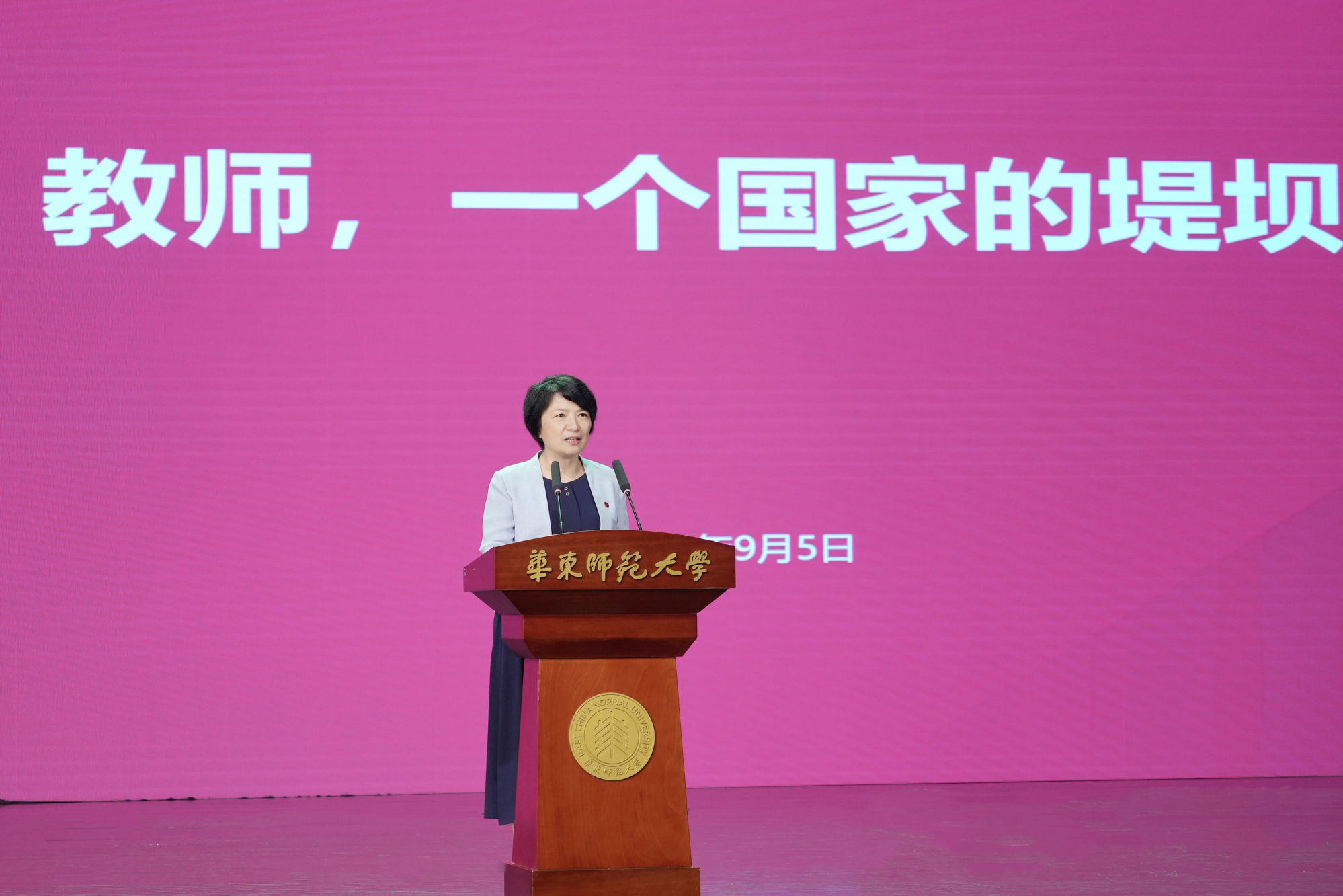 如今,建设教育强国的号角已经吹响,华东师大正满怀豪情书写新的篇章。希望在座的同学们,特别是我们的师范生们,不负韶光,不负时代,砥砺前行。你们的高度决定国家的高度,你们的心跳就是国家的心跳,借用今天的活动题目,你们,要做这个世界上比春风更美的人。