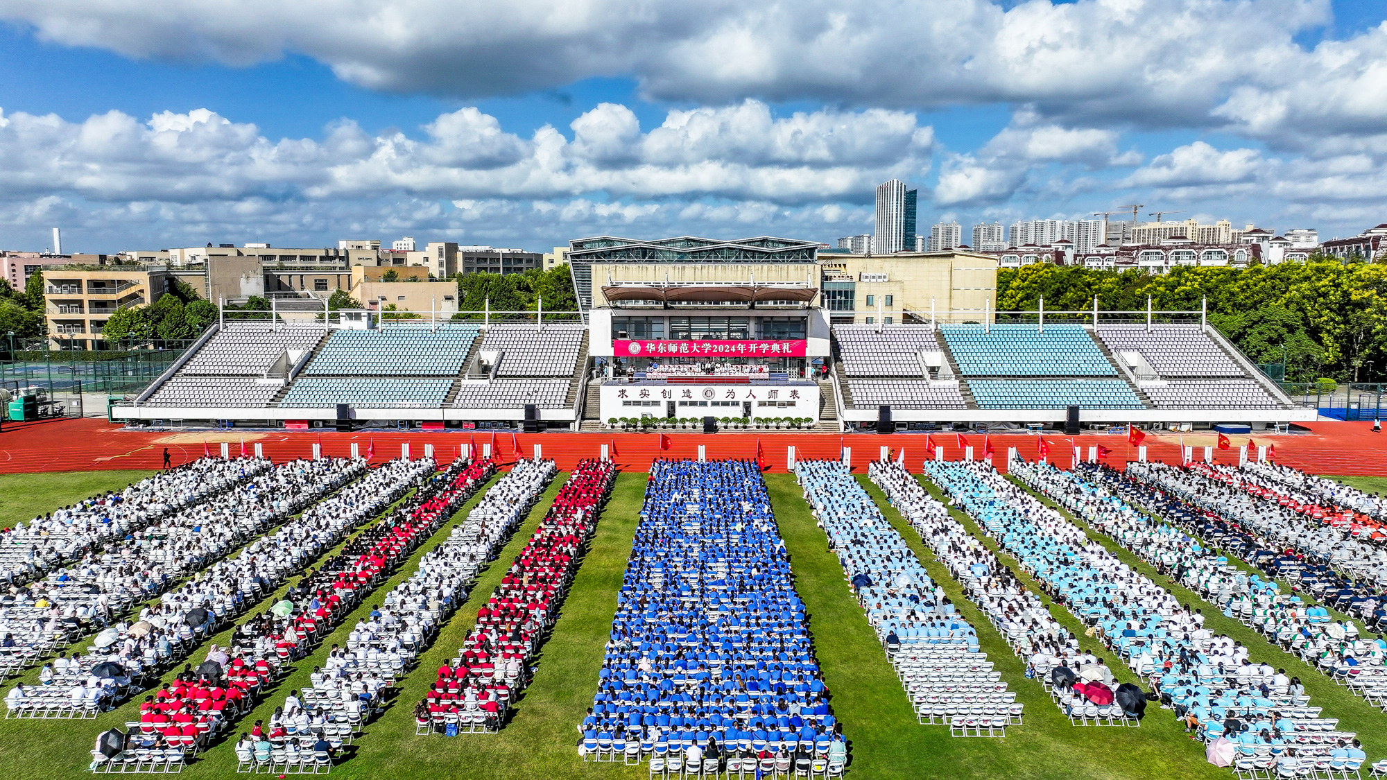 3245澳门新莆京2024级新生开学典礼今天在闵行、普陀两校区分别举行,校长钱旭红在典礼上作了题为《健全即成人,成长即成功》的讲话,寄语2024级新生。