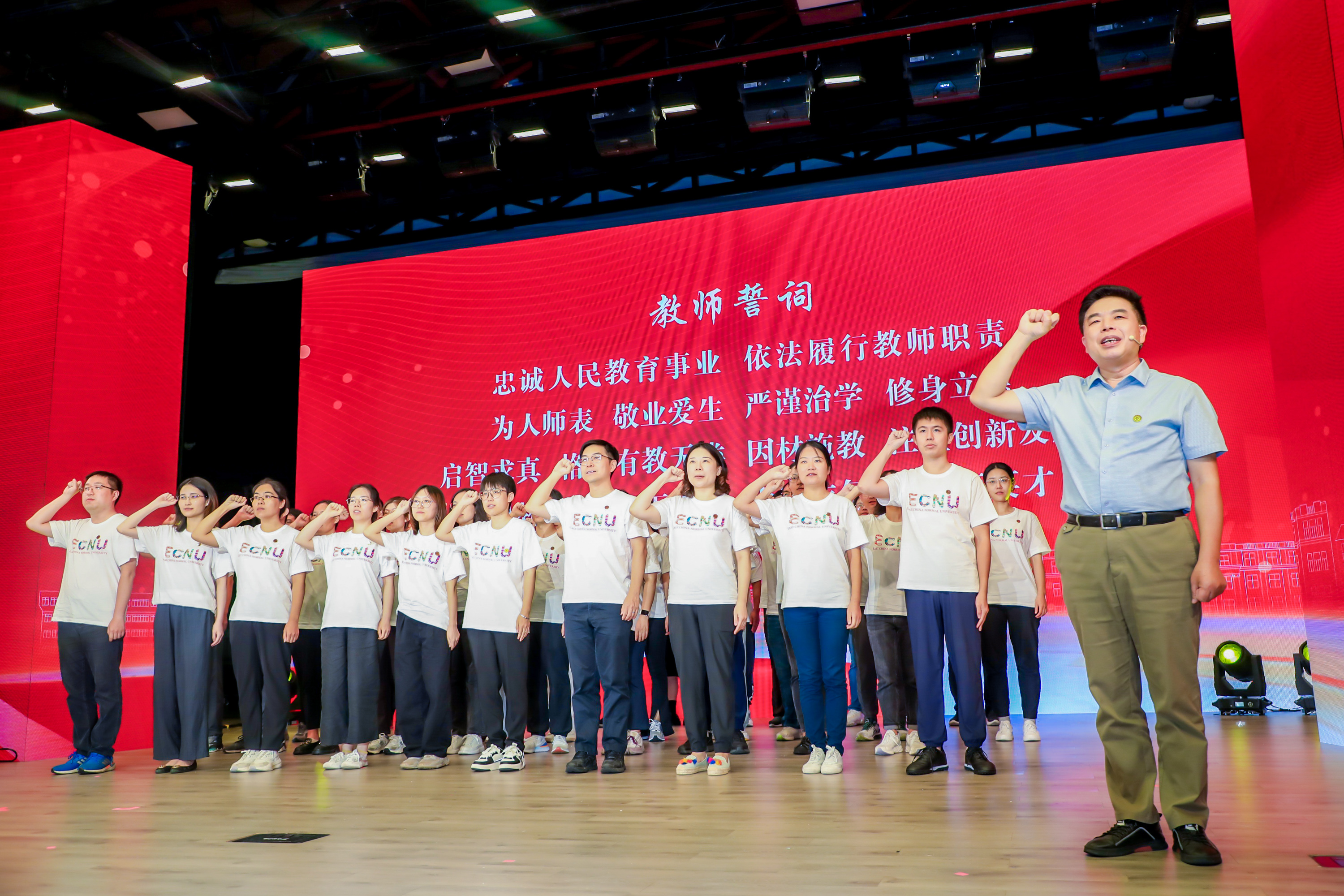 全国优秀教师谈胜利教授作为领誓人带领新入职教师庄严宣誓