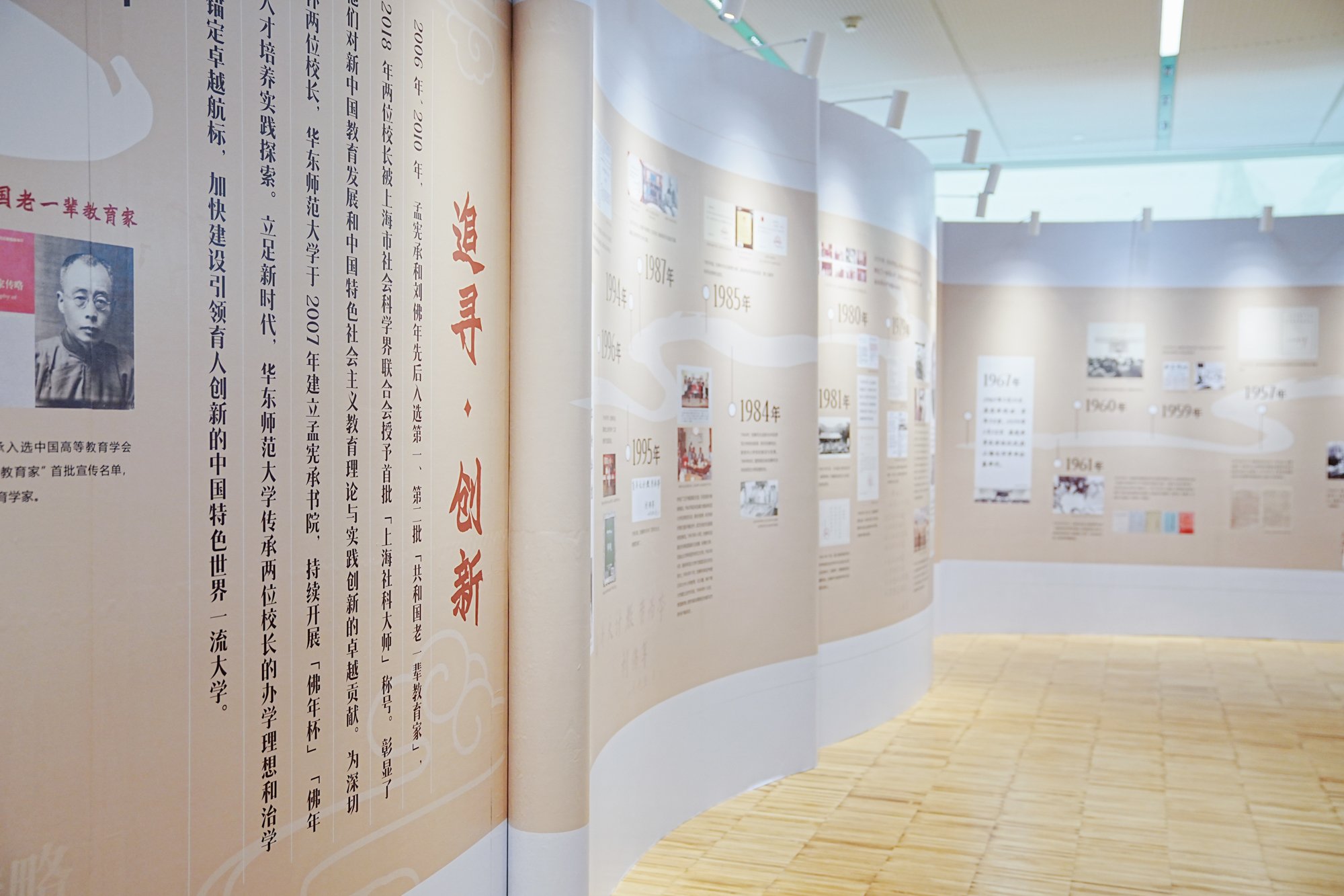 此次展览集中展示了孟宪承、刘佛年两位大师的珍贵文物、手稿、照片以及他们的学术著作等,旨在传承两位大师立德修身、潜心治学、开拓创新的精神文脉和治学风范,以教育家精神引领铸魂强师,以文化人、以文育人。