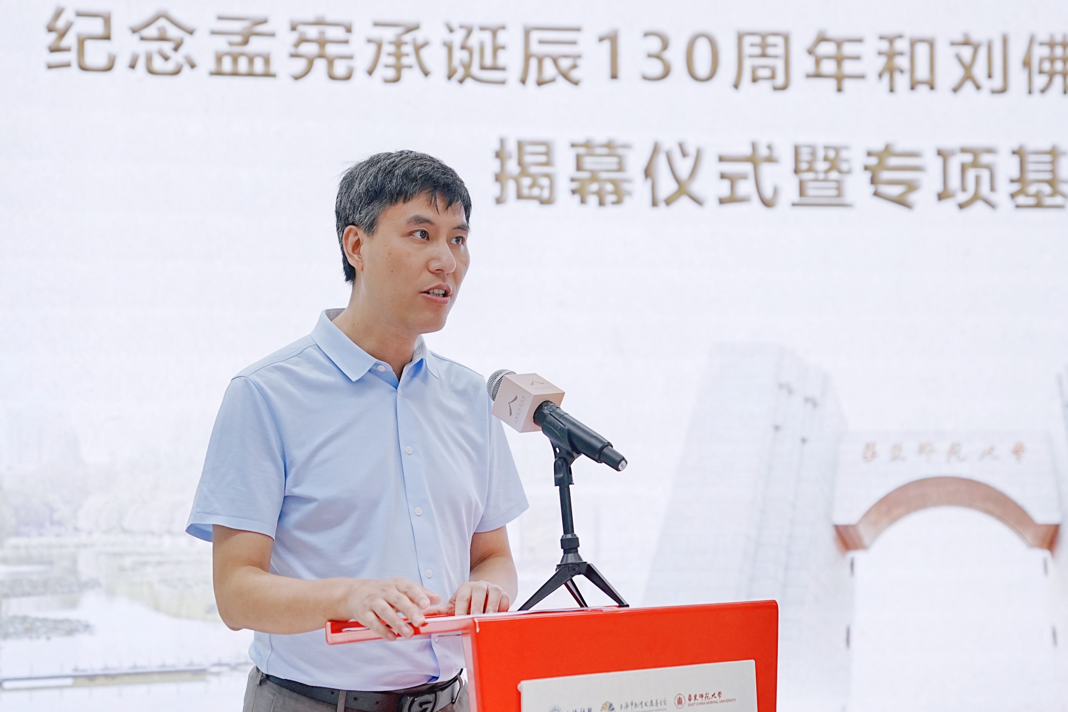 王为松在致辞中讲述了孟宪承、刘佛年两位先生与上海社联的深厚渊源,他表示,孟宪承、刘佛年两位先生在社科理论建设、学科建设、人才培养上树立了大师典范,是我们今天重要的大师遗产,上海社联将继续打造“礼赞社科大师”品牌,为培育壮大哲学社会科学人才队伍,打造文化自信自强的上海样本,努力建设习近平文化思想最佳实践地做出更大贡献。