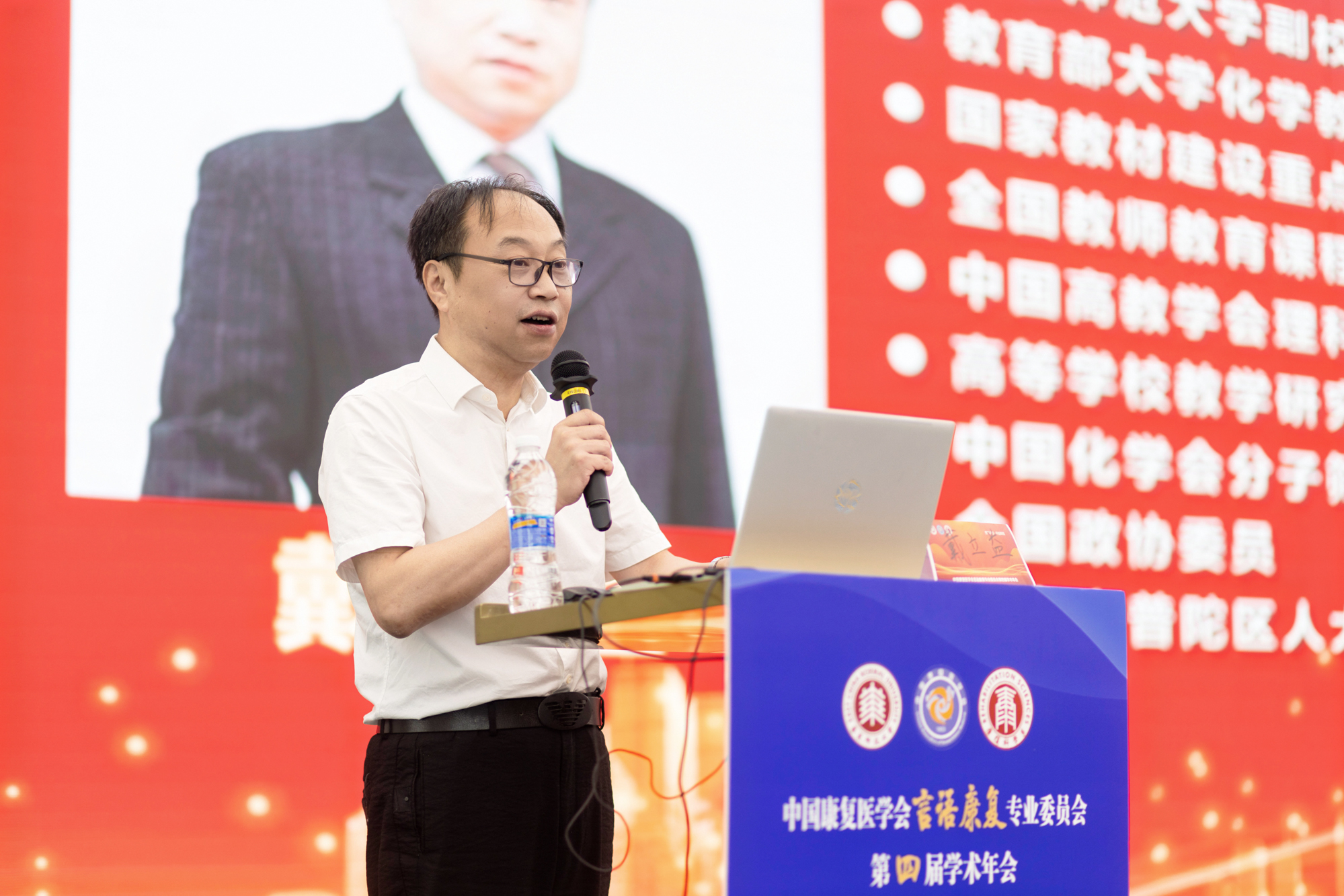 仪式最后,中国教育技术协会教育康复专业委员会主任委员谢敬仁高度赞扬了康复科学系过去二十年的成就,回顾了康复科学系自2004年成立以来的发展历程,强调了在学科建设、人才培养、科学研究和社会服务方面取得的显著成就。面对未来的挑战,他鼓励师生继续努力,深化教育改革,加强科研与服务,培养更多高素质的言语语言康复人才,为国家言语语言康复事业做出更大贡献。