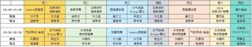 ECNU运动中心团操课程安排表