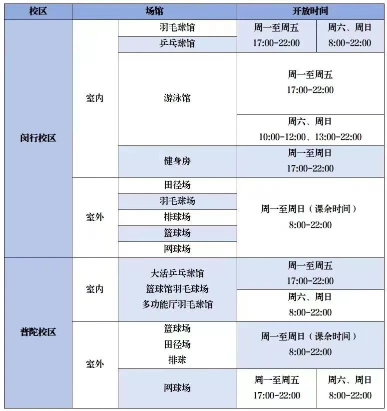 场馆利用晚上、双休日和节假日,面向校内应开尽开,服务师生,场地关闭时间延长至22:00。