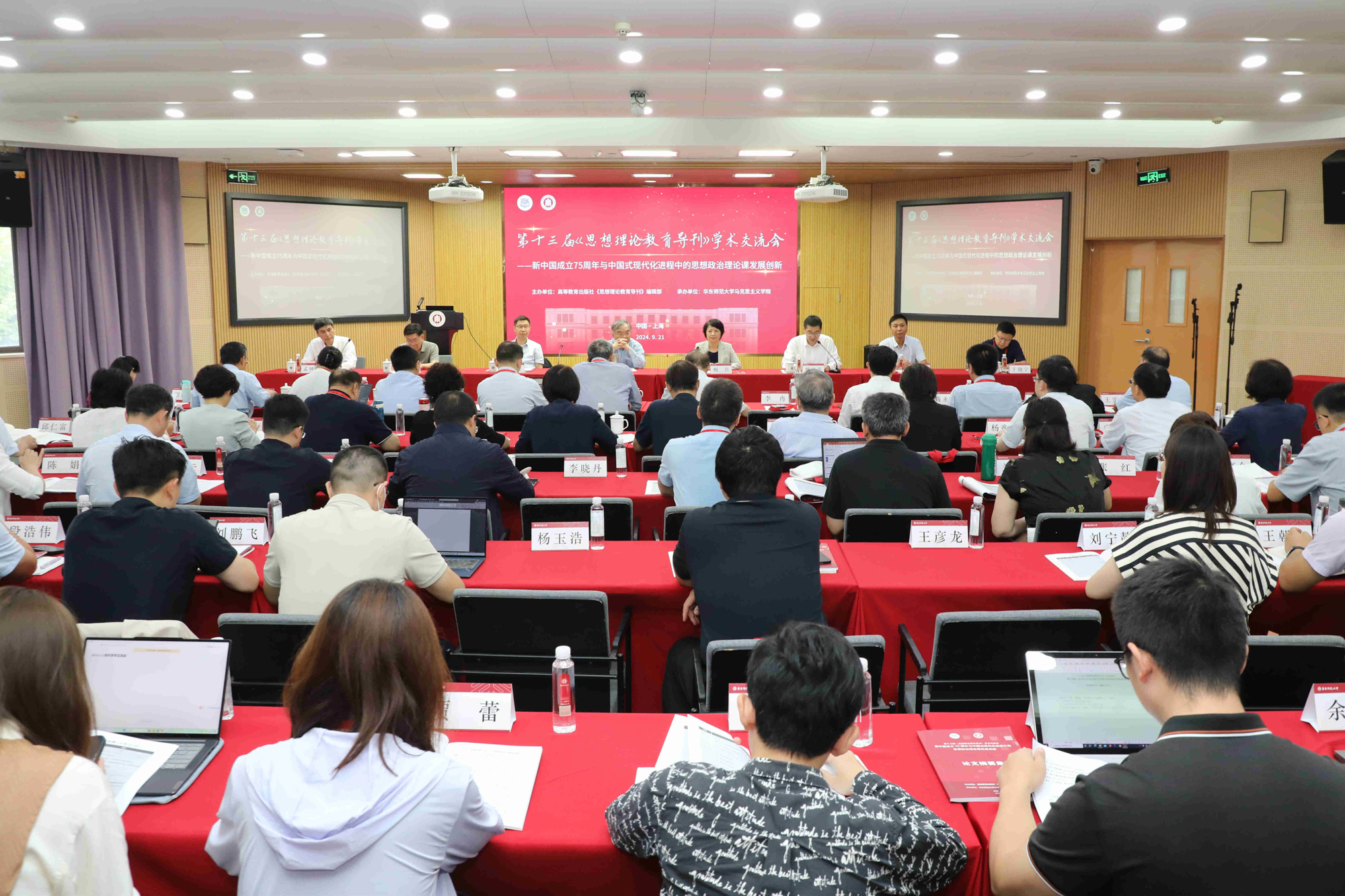 思政课是落实立德树人的关键课程,深化思政课改革创新是提升思政引领力的重要举措。在迎接新中国成立75周年之际,为深入学习贯彻习近平新时代中国特色社会主义思想,以实际行动贯彻落实新时代学校思政课建设推进会、党的二十届三中全会、全国教育大会精神,推动新时代思想政治理论课内涵式发展,9月21日,第十三届《思想理论教育导刊》学术交流会在3245澳门新莆京普陀校区举行。