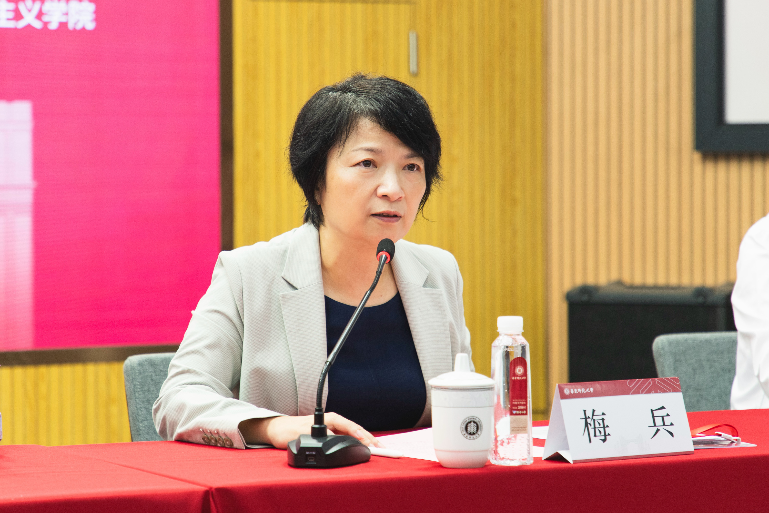 梅兵向学术交流会的召开表示热烈祝贺,向各位专家学者的到来表示诚挚欢迎,并介绍了学校在积极构建“大思政课”育人格局的创新举措。她表示,思政课建设是党领导教育工作的重中之重,如何在进一步全面深化改革,加快建设教育强国、科技强国、人才强国的伟大实践中推动思政课实现更高质量的发展,更好履行其铸魂育人的使命,是思政课教师必须深入思考的问题。