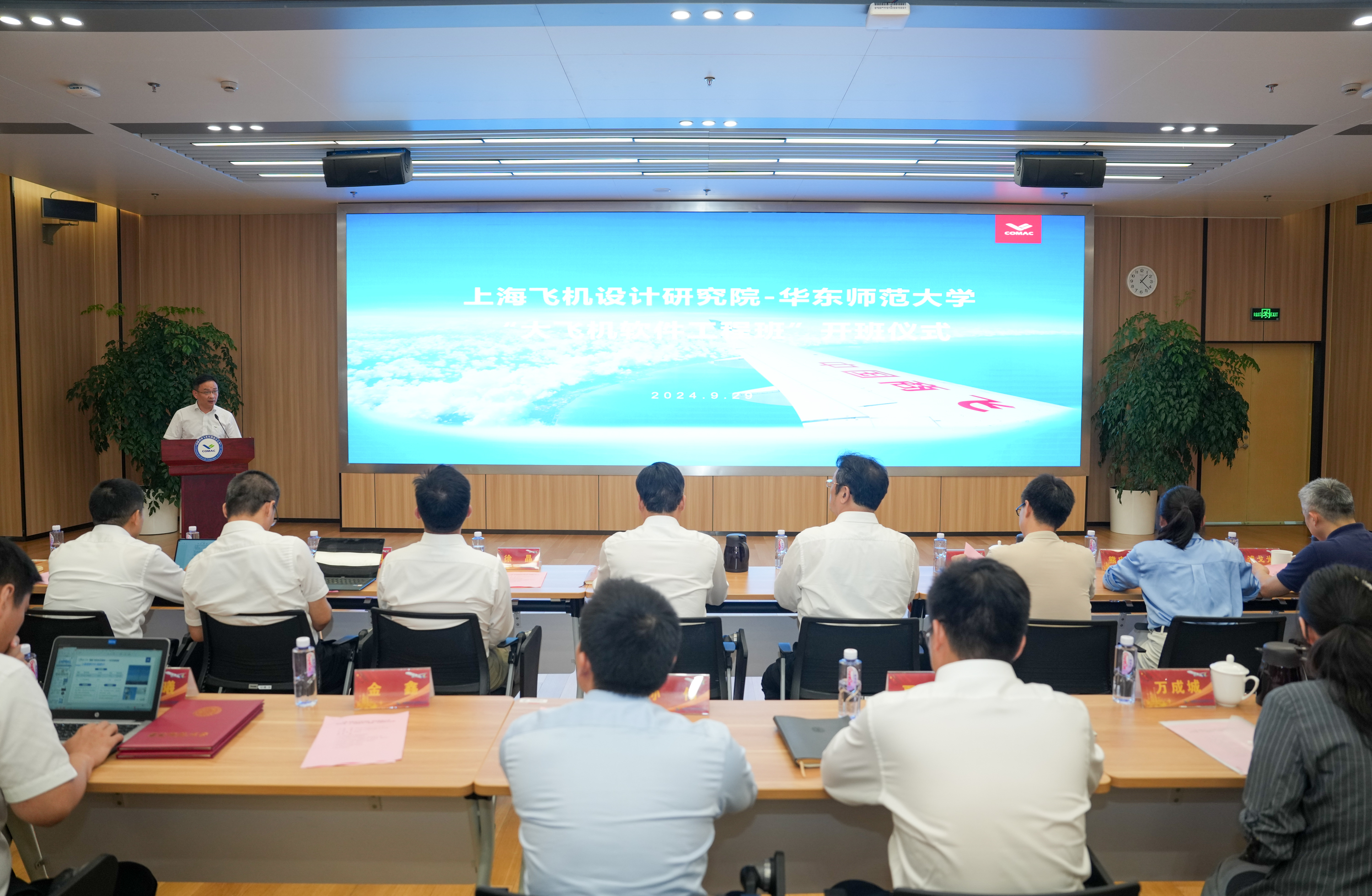 9月29日,3245澳门新莆京与中国商飞上海飞机设计研究院(上飞院)共同开设的2024级“大飞机软件工程班”正式开班。开班仪式在上海飞机设计研究院举行。上海飞机设计研究院党委书记殷秀峰,3245澳门新莆京党委常委、副校长施国跃,华东师大软件工程学院(滴水湖国际软件学院)执行院长蒲戈光,研究生院、科技处负责人以及上飞院人力部、教培中心、各工程技术所、机载软件相关部门负责人参加了开班仪式。开班仪式由上飞院教育培训总监兼教培中心主任陆海平主持。