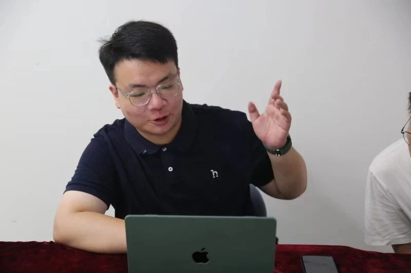 李坤璘与同学探讨其研究内容
