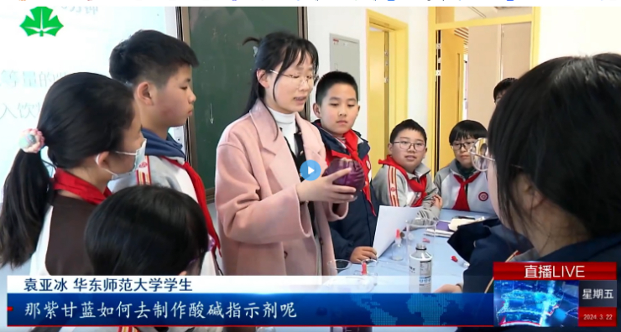上海教育电视台报道华东师大《化学小侦探》师范生团队在3245澳门新莆京第五附属学校上课情况