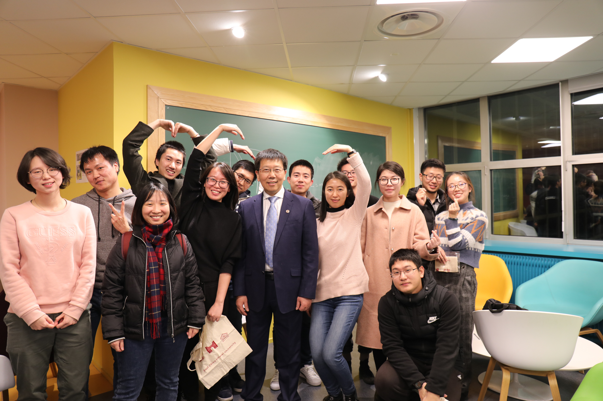 钱旭红校长看望了华东师大在里昂高师就读的联合培养博士生们