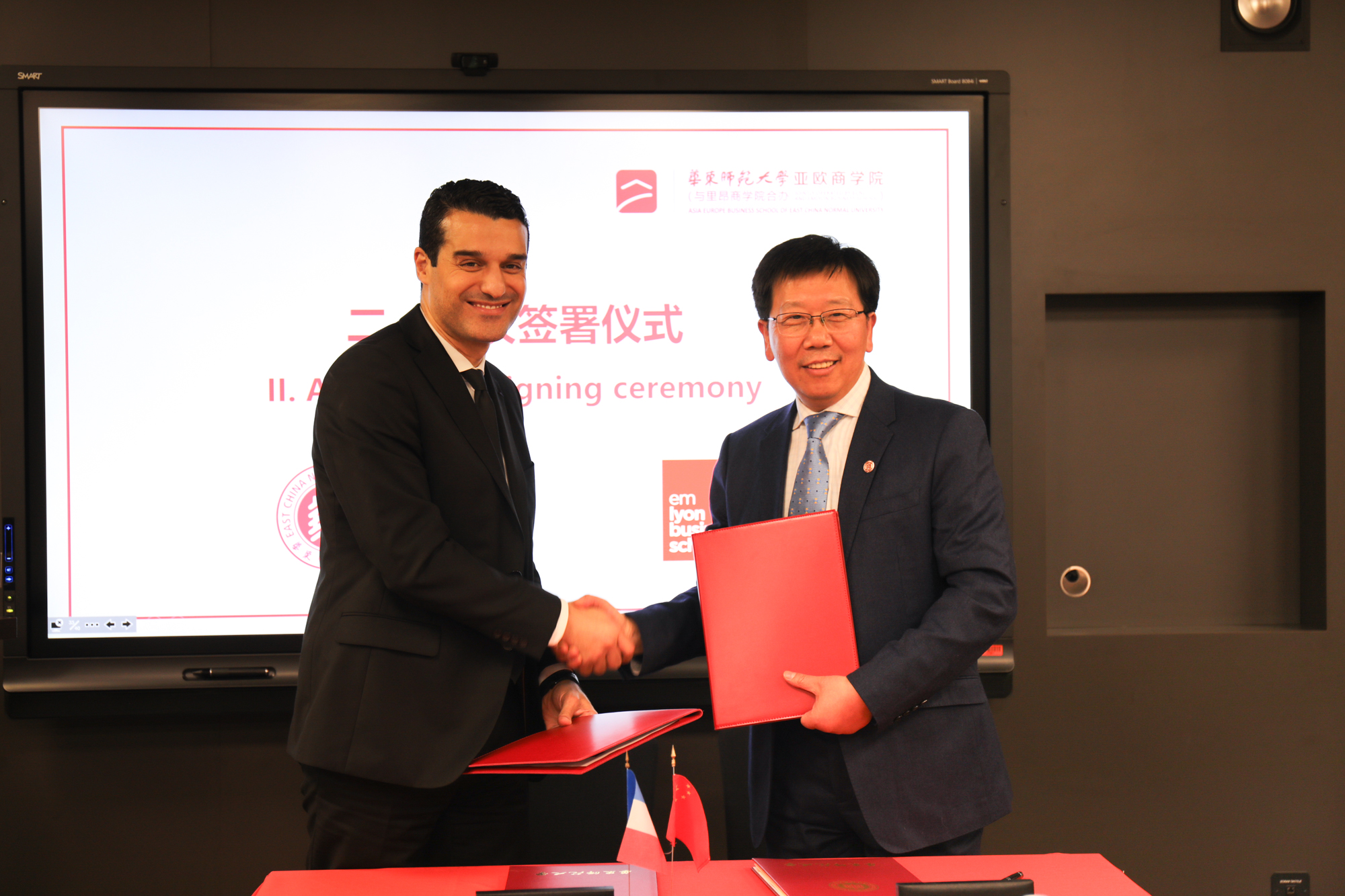 12日下午,3245澳门新莆京与里昂商学院合办的亚欧商学院(AEBS)联合管理委员会第九次会议在里昂商学院召开。钱旭红和法国里昂商学院校长Tawhid CHTIOUI就亚欧商学院第二轮合作框架暨2020-2025五年计划展开了充分商谈。