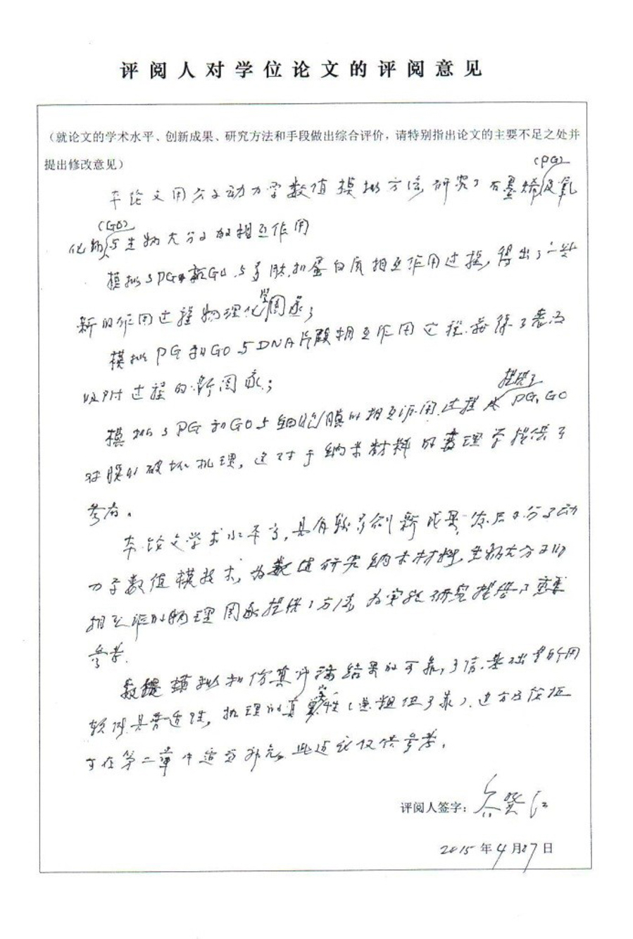 2015年4月17日,乔登江身体已很虚弱,但他仍在为博士生评阅博士论文