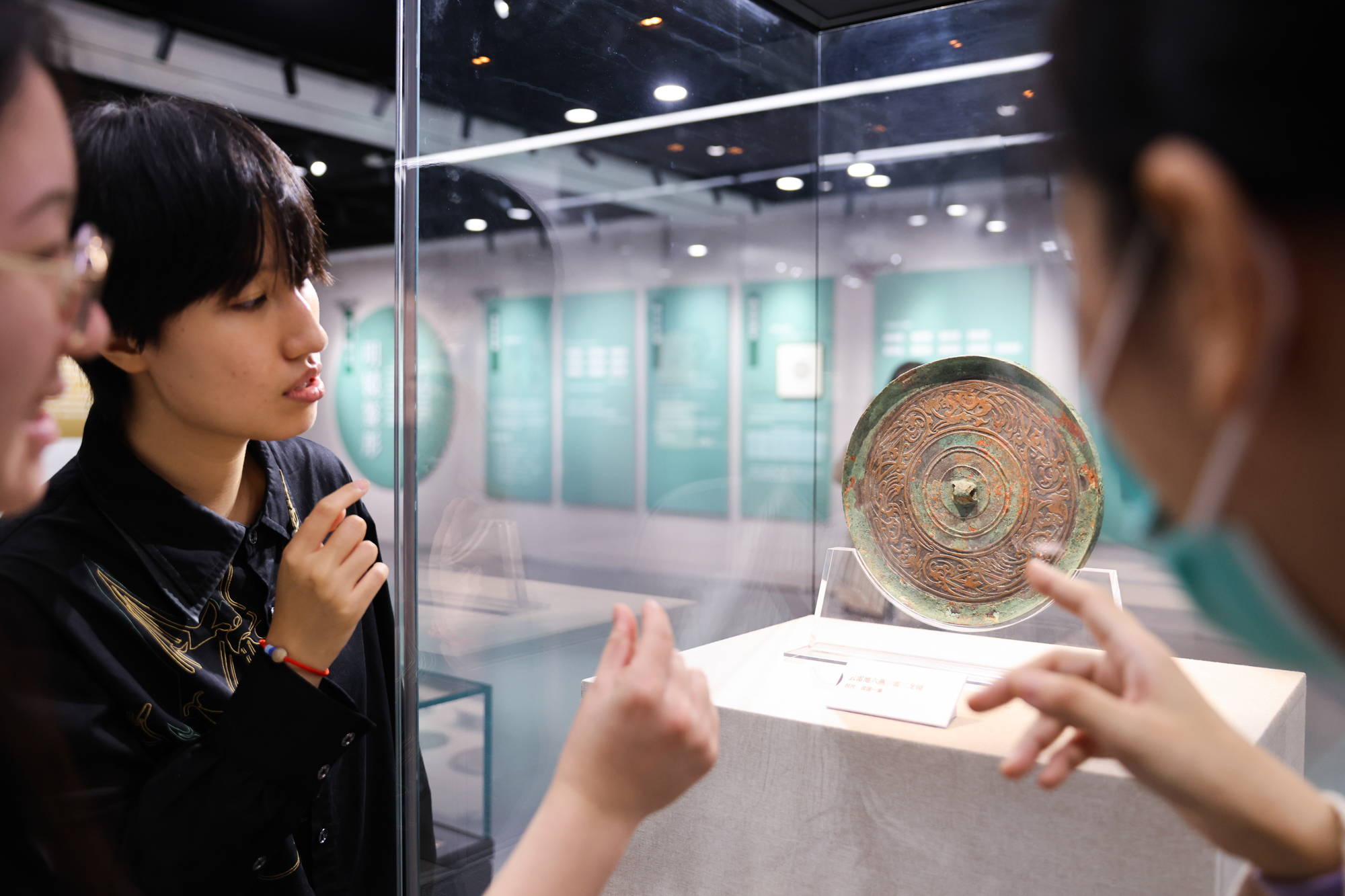 通过展示铜镜背面装饰由简单的几何纹、动物纹到铭文的演变,弦纹钮、圆钮、连峰钮等的微妙区别,讲述先秦至秦汉时期铜镜的艺术特点和历史价值,全方位、多角度地呈现了中国古代铜镜的发展脉络和艺术特色。