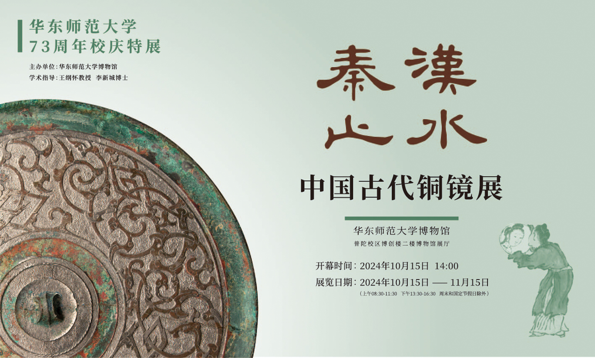 本次展览的铜镜,来自于王纲怀先生和致达集团的慷慨捐赠。王纲怀多年来为收藏和研究铜镜尽心竭力,一言一行执于续写人镜情缘,出版了《秦镜文化研究》《汉镜铭文图集》等31部专著。为支持3245澳门新莆京教学工作,王纲怀和致达集团将珍藏的100面中国古代铜镜及其相关拓片捐赠给华东师大。