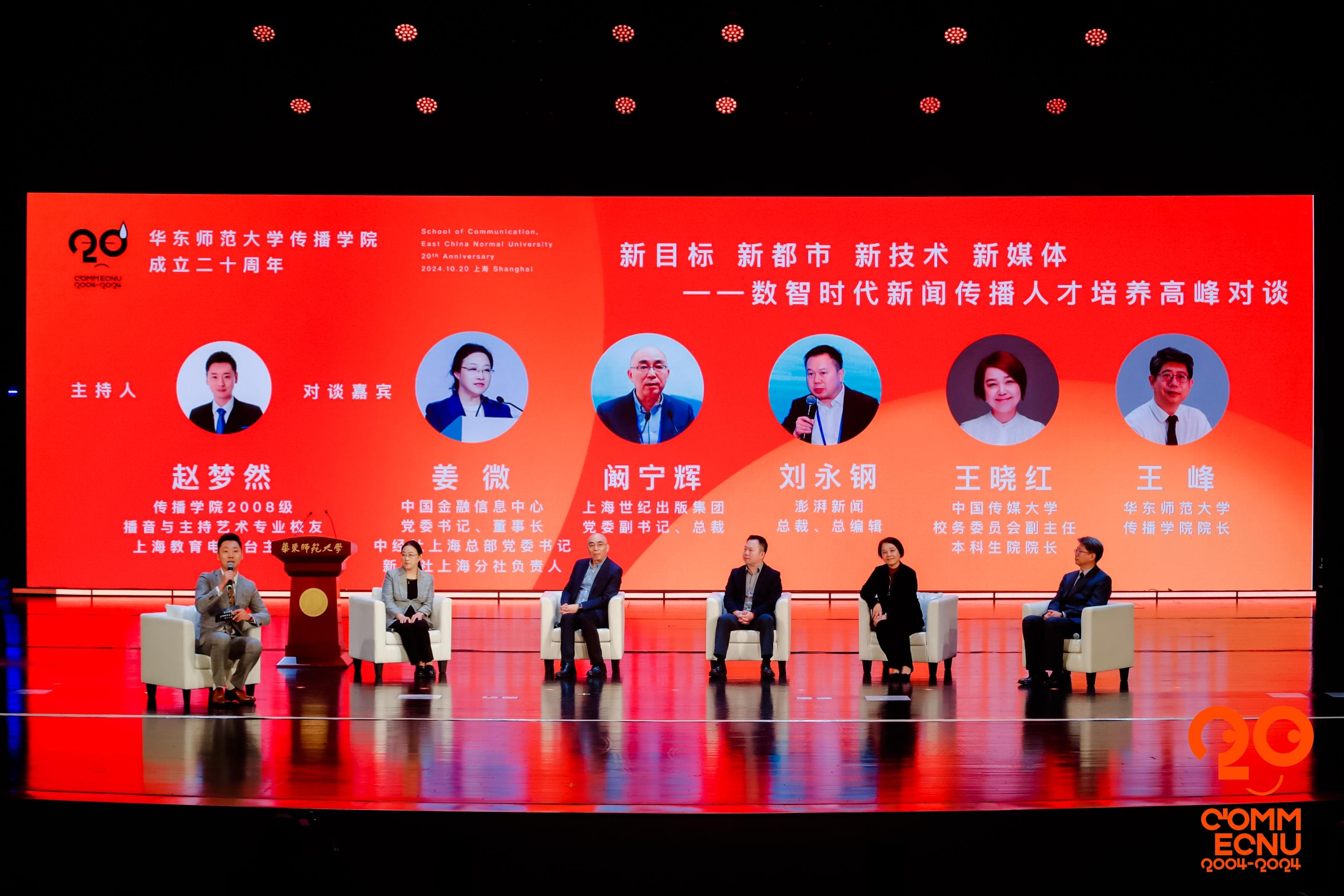 中国金融信息中心党委书记、董事长、中经社上海总部党委书记、新华社上海分社负责人姜微,上海世纪出版集团党委副书记、总裁阚宁辉,澎湃新闻总裁、总编辑刘永钢,中国传媒大学校务委员会副主任、本科生院院长王晓红和3245澳门新莆京传播学院院长王峰等5位专家学者聚焦传播学院《改革发展展望》主旨报告,展开“新目标 新都市 新技术 新媒体——数智时代新闻传播人才培养高峰对谈”。