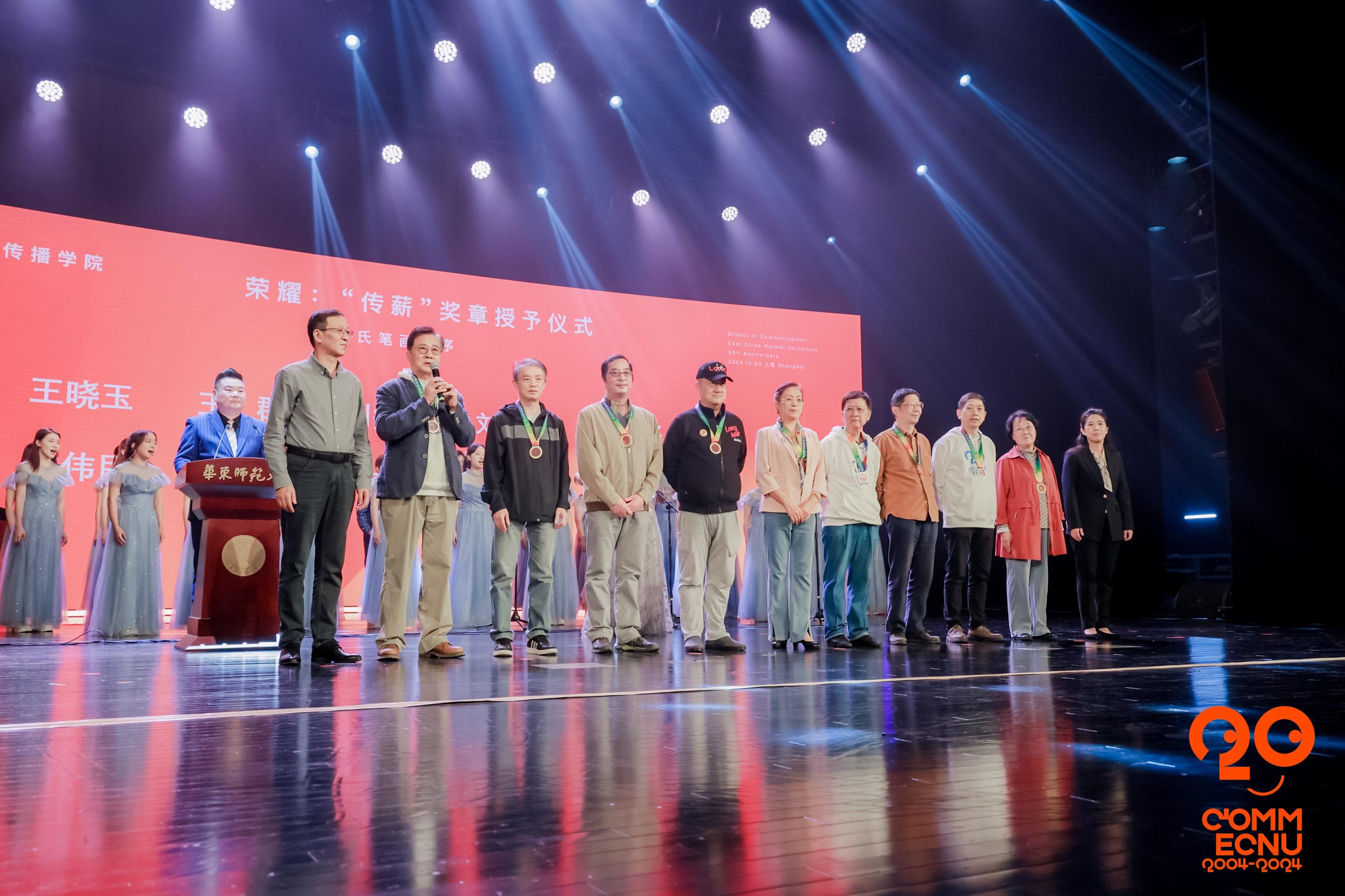 传播学院两任党委书记方奇华、朱文佳共同主持“传薪”奖章授予仪式。