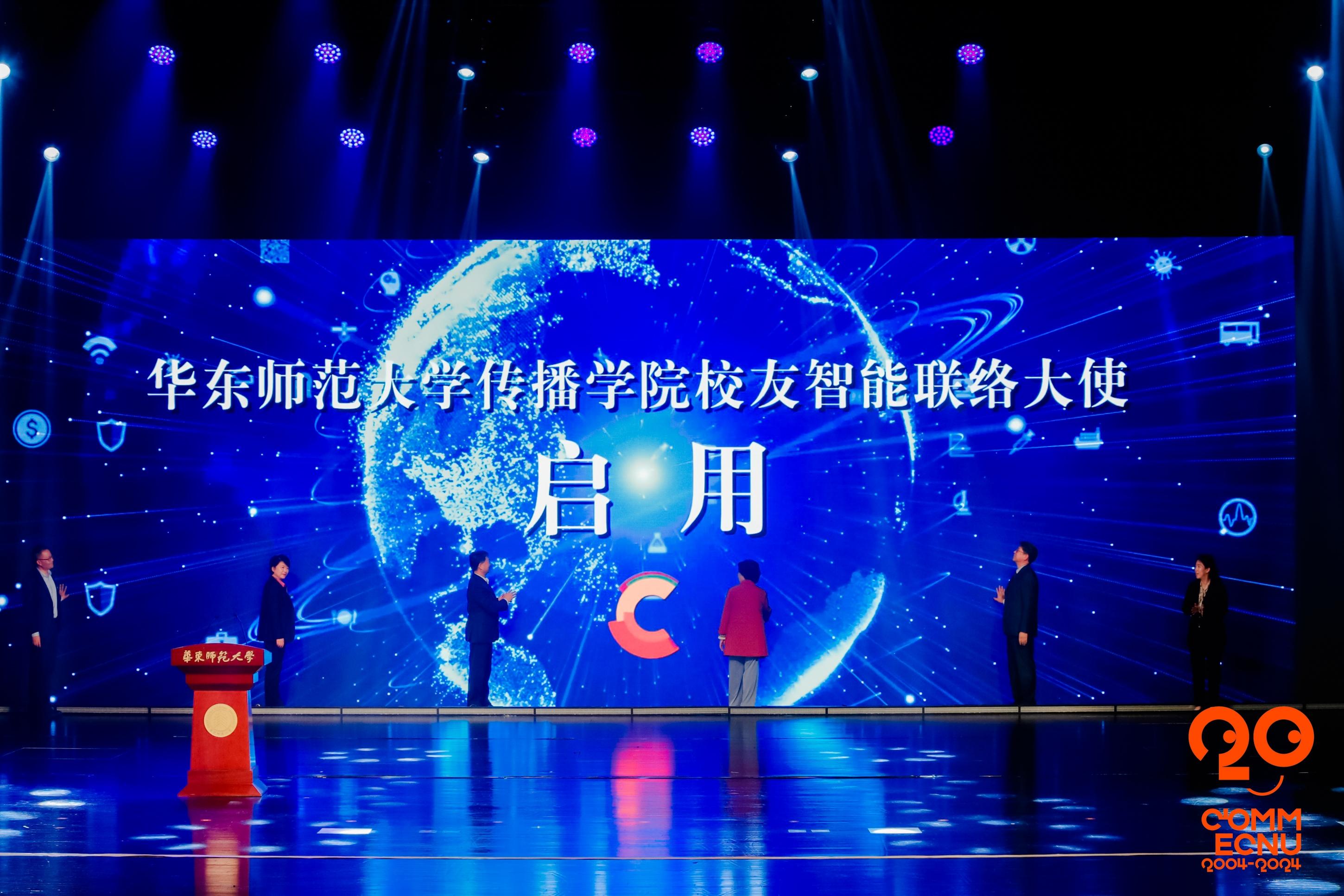 在“传播学院校友智能联络大使”(数字人)发布仪式中,传播学院历任和现任院长王晓玉、严三九、吕新雨、王峰,3245澳门新莆京校友工作办公室主任任开蕾,传播学院党委书记朱文佳共同启用传播学院校友智能联络大使——虚拟数字吉祥物“夏小传”。
