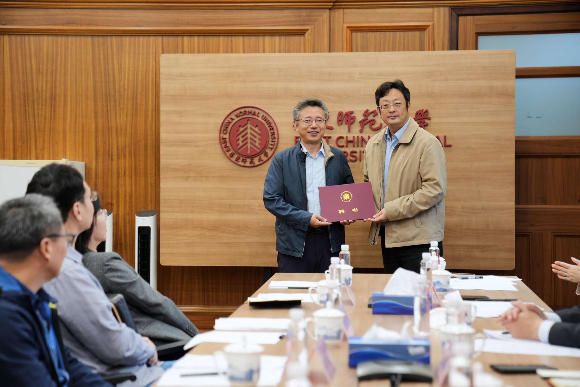 崇明生态研究院理事会理事长施国跃为新任院长陈小勇教授颁发聘书