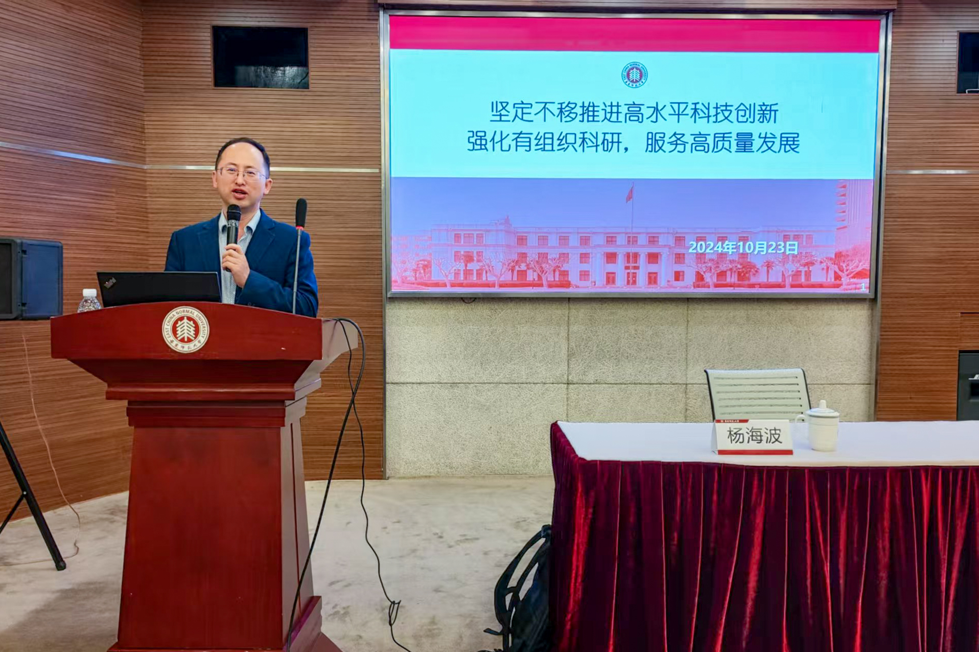 科技处处长杨海波向老同志们汇报了当前高水平科技创新的新形势、新变化,学校科技体制改革方面的新举措、新成效,以强化需求导向的有组织科研为主的新思考、新布局。在推进高水平科技创新方面,学校机遇与挑战并行。近年来学校持续创新有组织科研的制度体系,全面提升学术创新策源能力和服务经济社会发展能力。实施基础研究和应用研究的双轮驱动,以理工科卓越学术的三年行动计划为主线,构建产学研协同的创新体系,形成科技创新生态环境。科研创新队伍的基础和厚度进一步夯实,承担国家重大科研任务取得多个重大突破,学校已成为国内高水平交叉研究的重要力量。