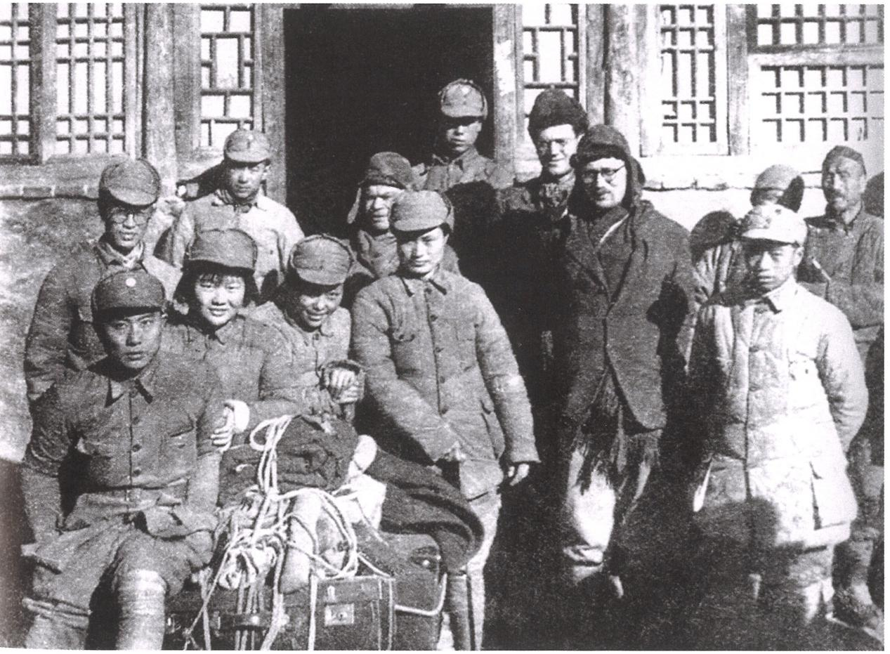 1942年,傅莱(后排右三)与国际友人林迈可(前排右二)、布朗杰斯特(后排左三)等人的合影