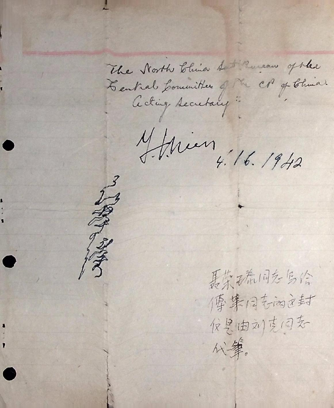聂荣臻司令员亲笔签名的信件