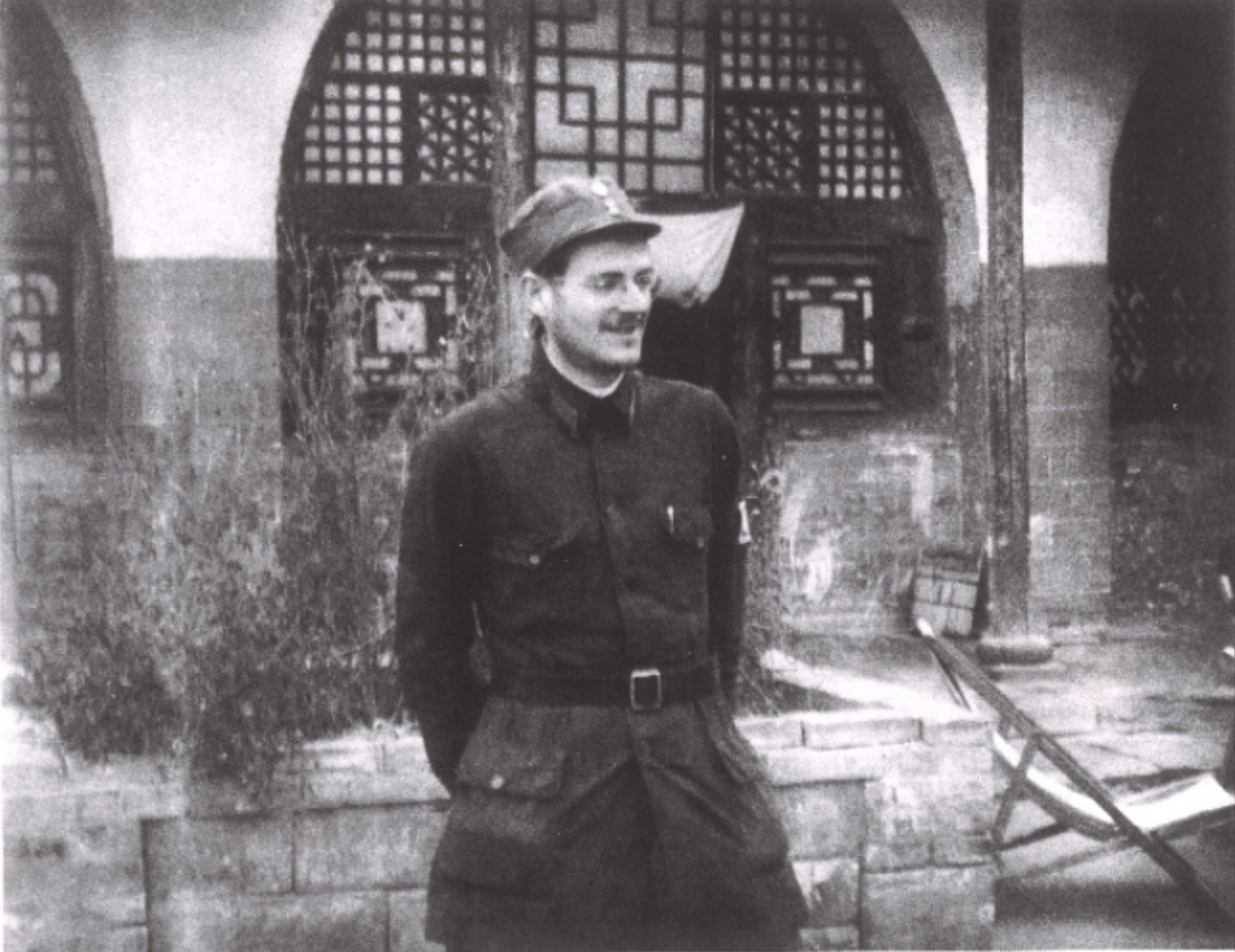 傅莱在延安窑洞前的留影