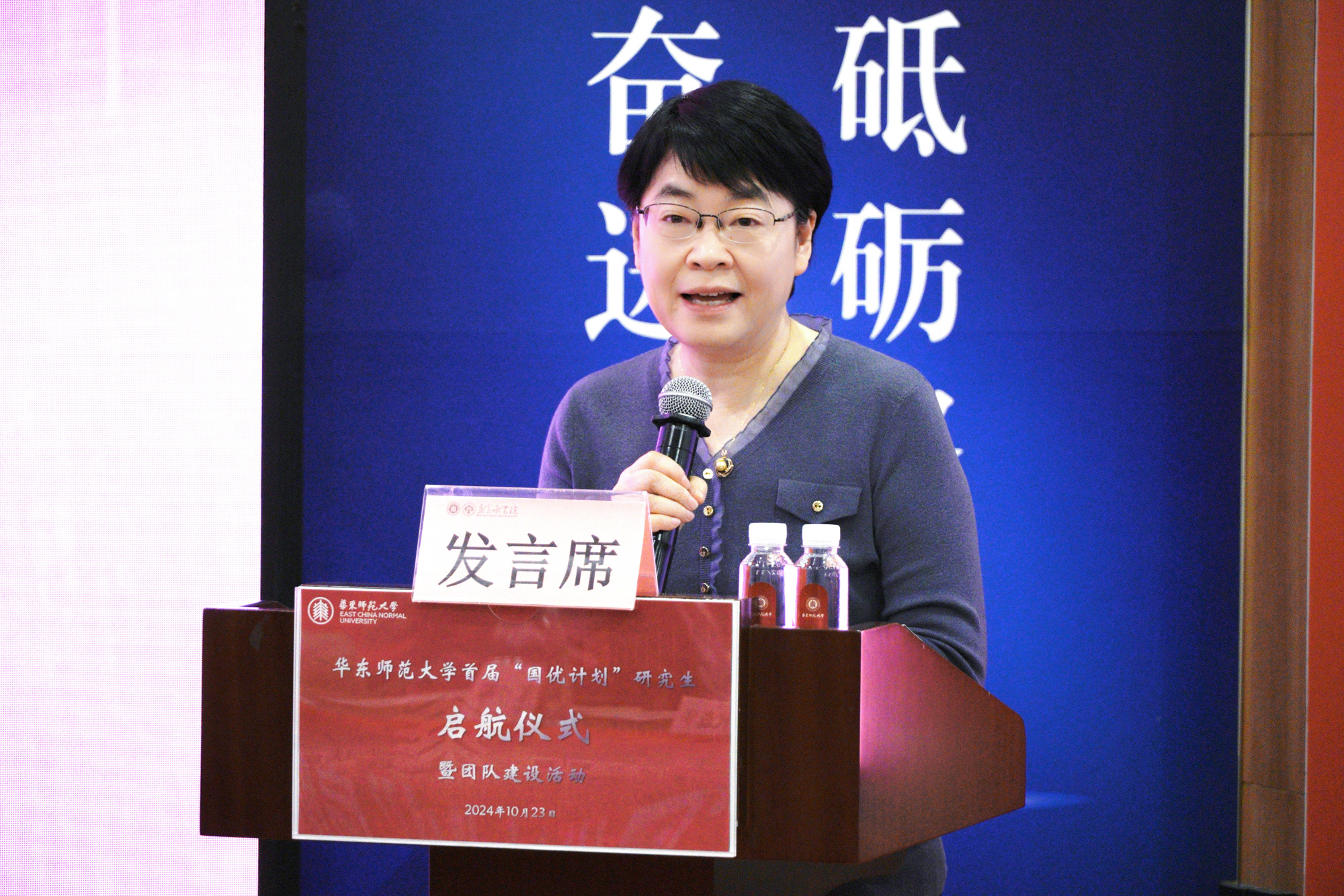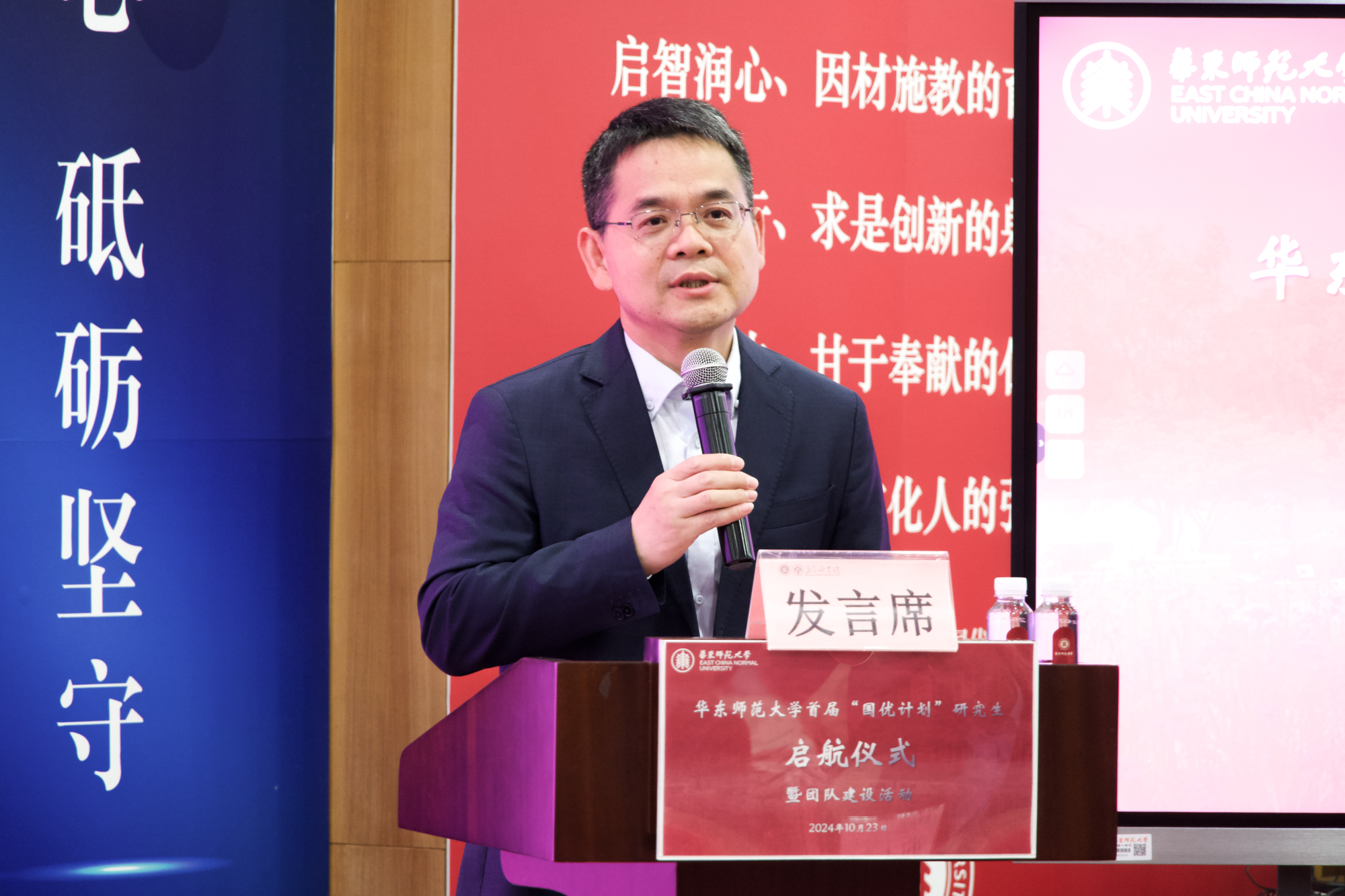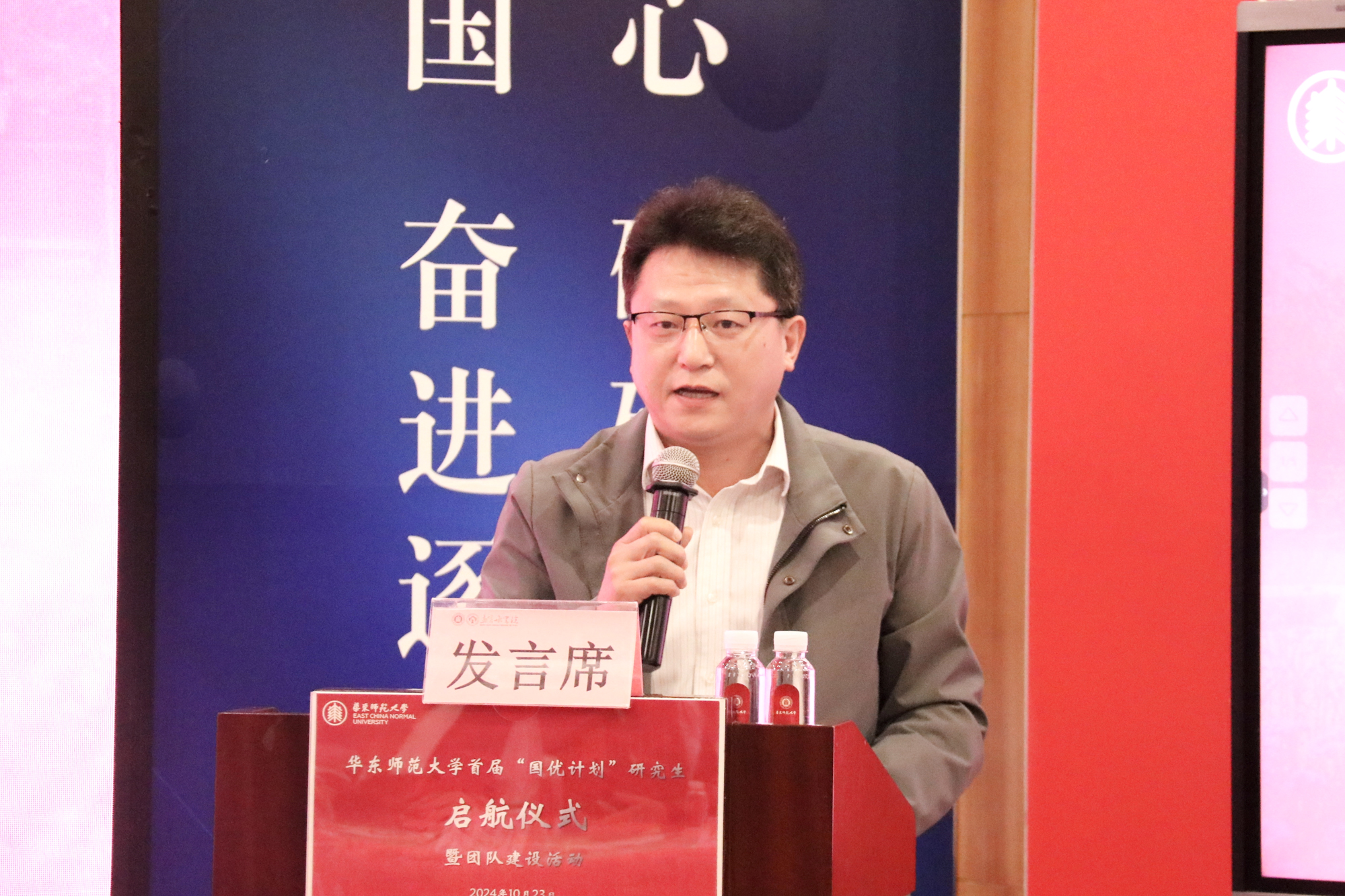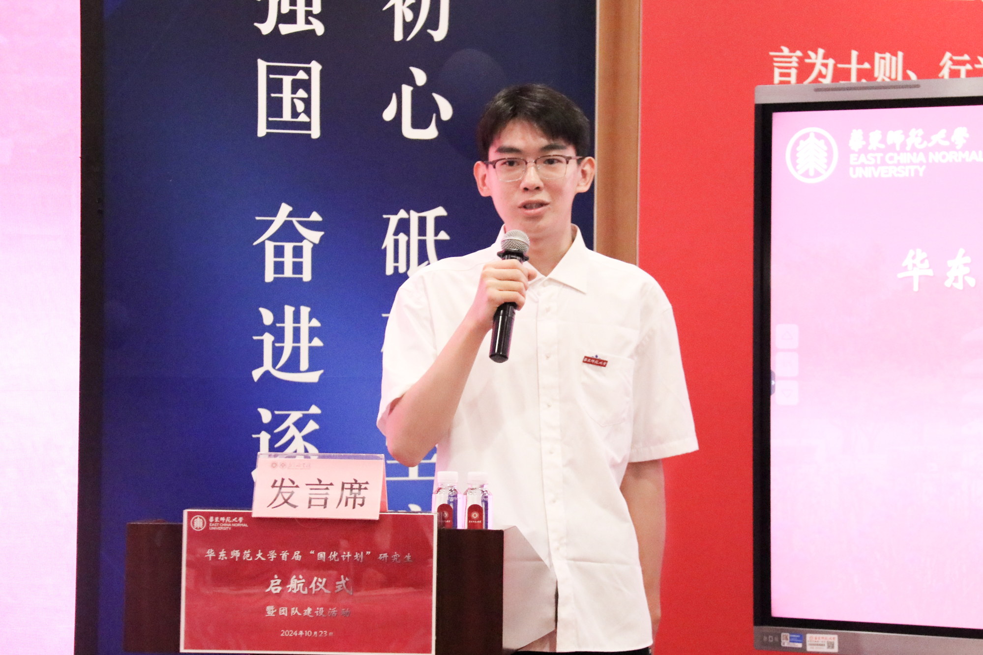 2024级学科教学(数学)专业硕士研究生阎嘉雨代表“国优计划”研究生发言,表示会依托“国优计划”的平台不断扎实学识、锤炼教技,永葆教育热情,努力成长为教育情怀深厚、专业素养卓越、教学基本功扎实的优秀教师,站稳基础教育的讲台,在建设教育强国的征程中贡献华东师大的青年力量。