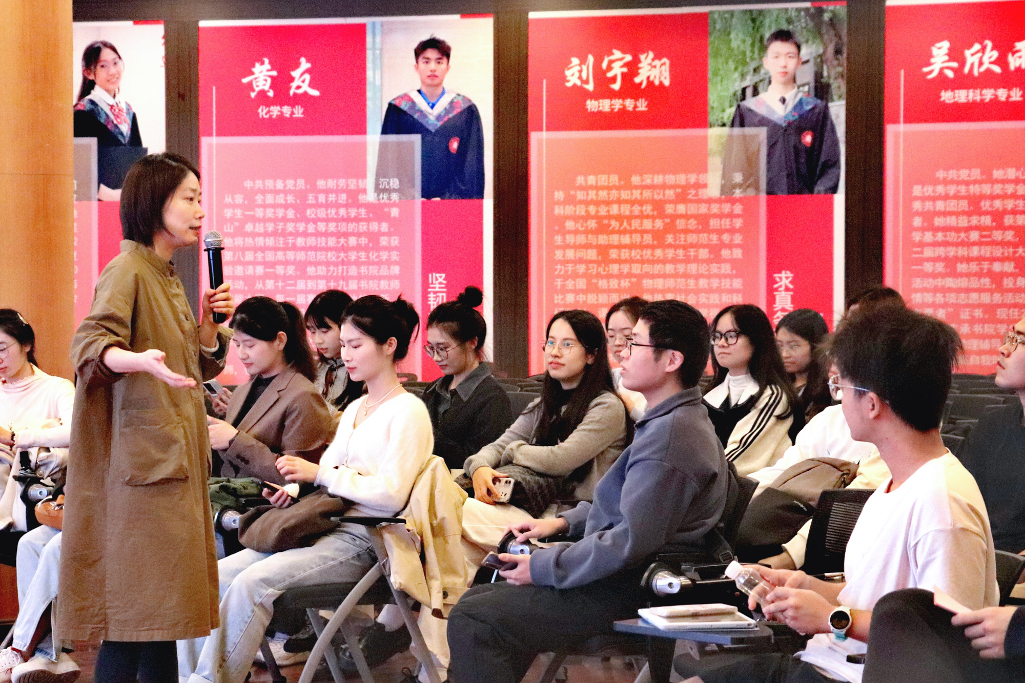 “你们未来面对的课堂,就是一个天然的实验室。”校内外导师代表徐斌艳、迟少辉、华杭、沈甸、熊宗齐等依次寄语“国优计划”学生,勉励同学们切身实践、磨练自我,坚定理想、终身学习,“一辈子做老师,一辈子学做老师”。
