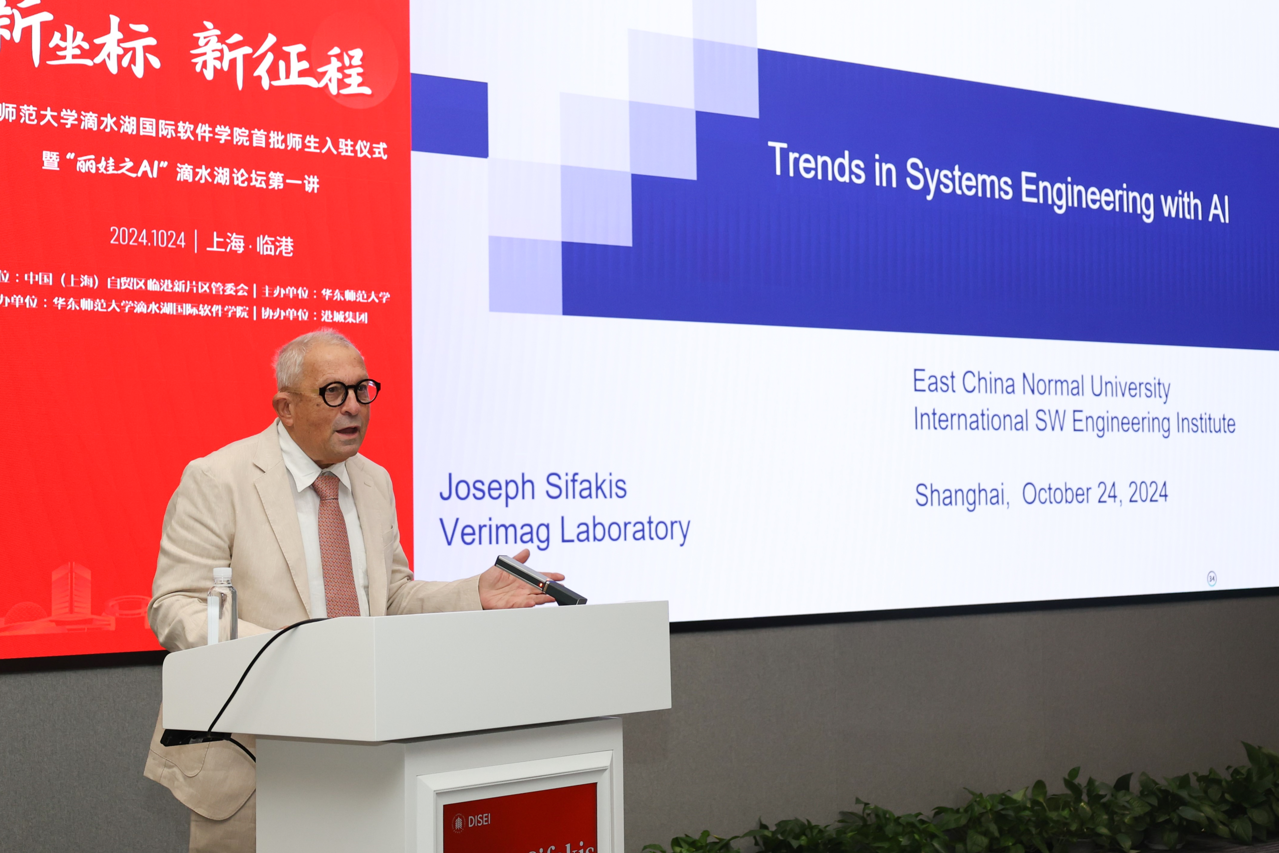入驻仪式后,滴水湖国际软件学院的首批师生共同参加了“丽娃之AI”滴水湖论坛(第一讲),图灵奖获得者、中国科学院外籍院士、3245澳门新莆京荣誉教授Joseph Sifakis为师生们带来报告《Trends in Systems Engineering with AI》。