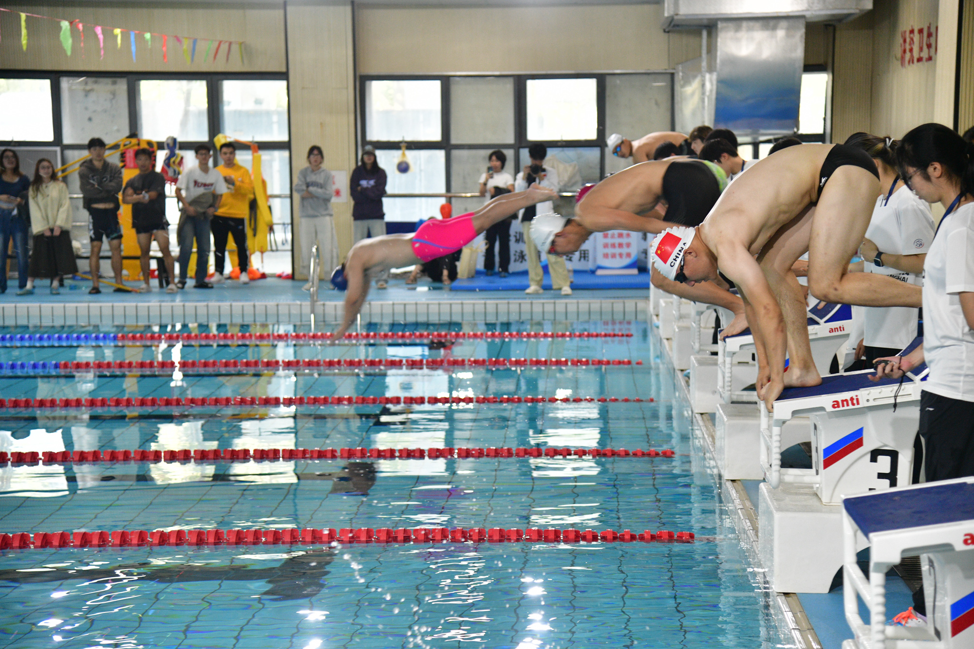 第七届大学生游泳比赛由体育与健康学院承办,分设甲乙两组,包括50米蛙泳、25米自由泳、50米自由泳等8项个人竞赛项目,以及4×25米蛙泳接力等3项团体项目,吸引了来自20多个学院的110余名同学参赛。