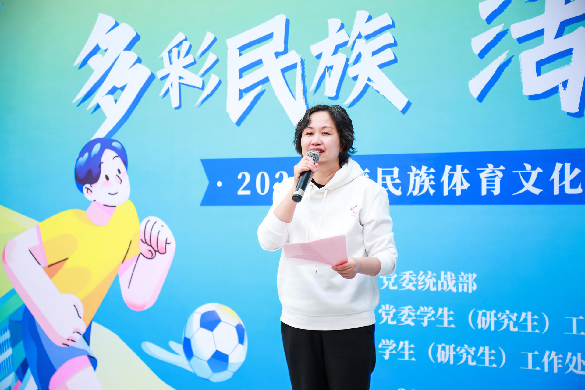 开幕式上,校党委常委、副校长程静致辞。她勉励同学们感受民族体育文化的魅力,将珍贵的文化遗产转化为推动社会进步、促进民族团结进步的强大动力,成为传承和发扬中华优秀传统文化的使者,像石榴籽一样紧紧抱在一起,共同促进民族团结进步,书写民族团结进步的新篇章。