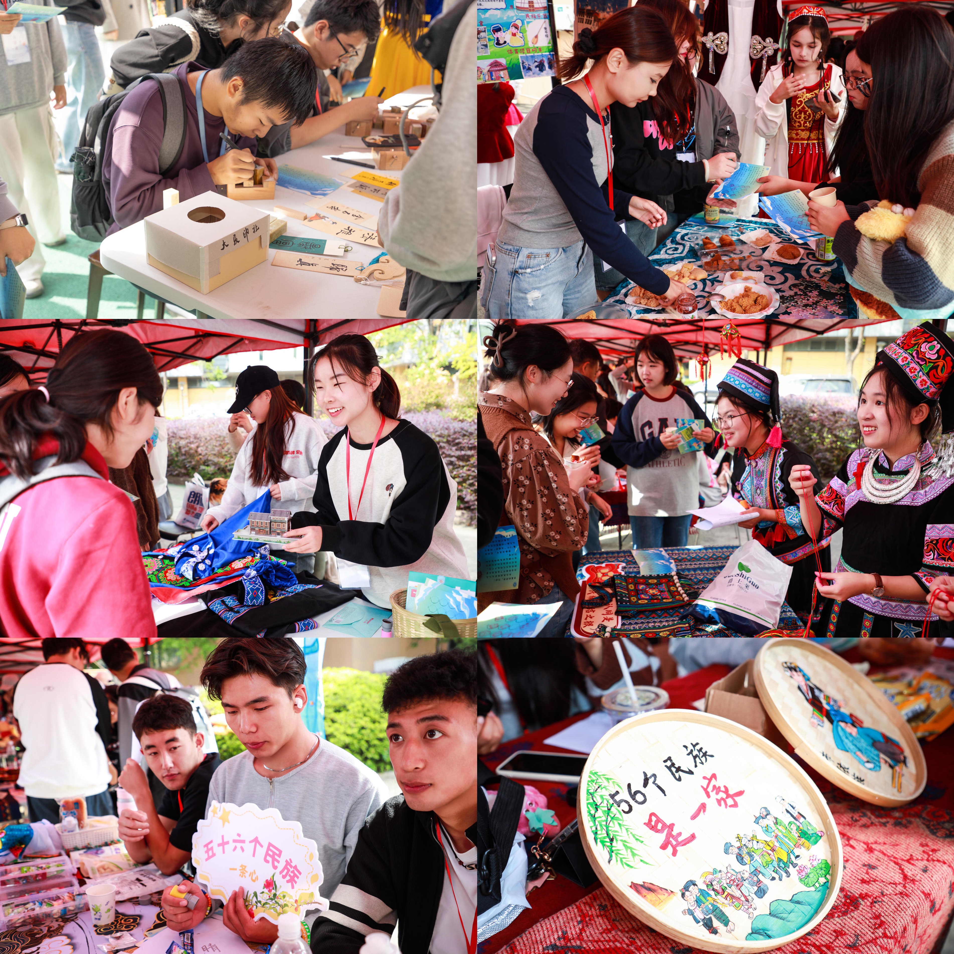 此次交流活动不仅有丰富多彩的文化展示,还有充满趣味的传统体育项目体验。在民族文化展览区域,精心布置的23个民族和社团摊位吸引了众多师生驻足参观。从书法、篆刻到汉服体验,再到地道的民族美食试吃、传统服饰体验、民俗工艺展示、趣味小游戏等,每一个展台都生动展示了民族文化的独特风采,从衣食住行等多角度展示民族文化。志愿者们解说并引导体验,参与者们在互动中增长了知识,领略了别样的民族精神和文化魅力。