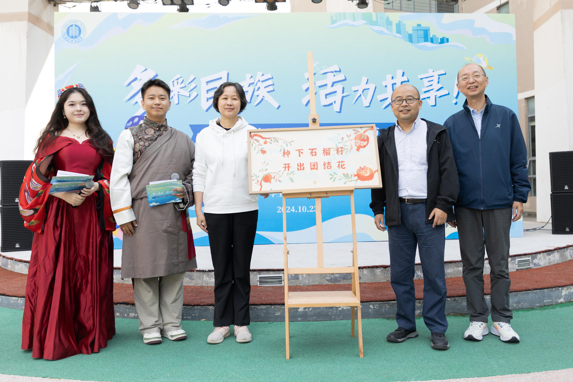 随后,师生代表共同绘制石榴籽主题油画,寓意各民族同学如同石榴籽一样紧紧相拥在一起,共同建设祖国的辽阔疆域和锦绣河山。