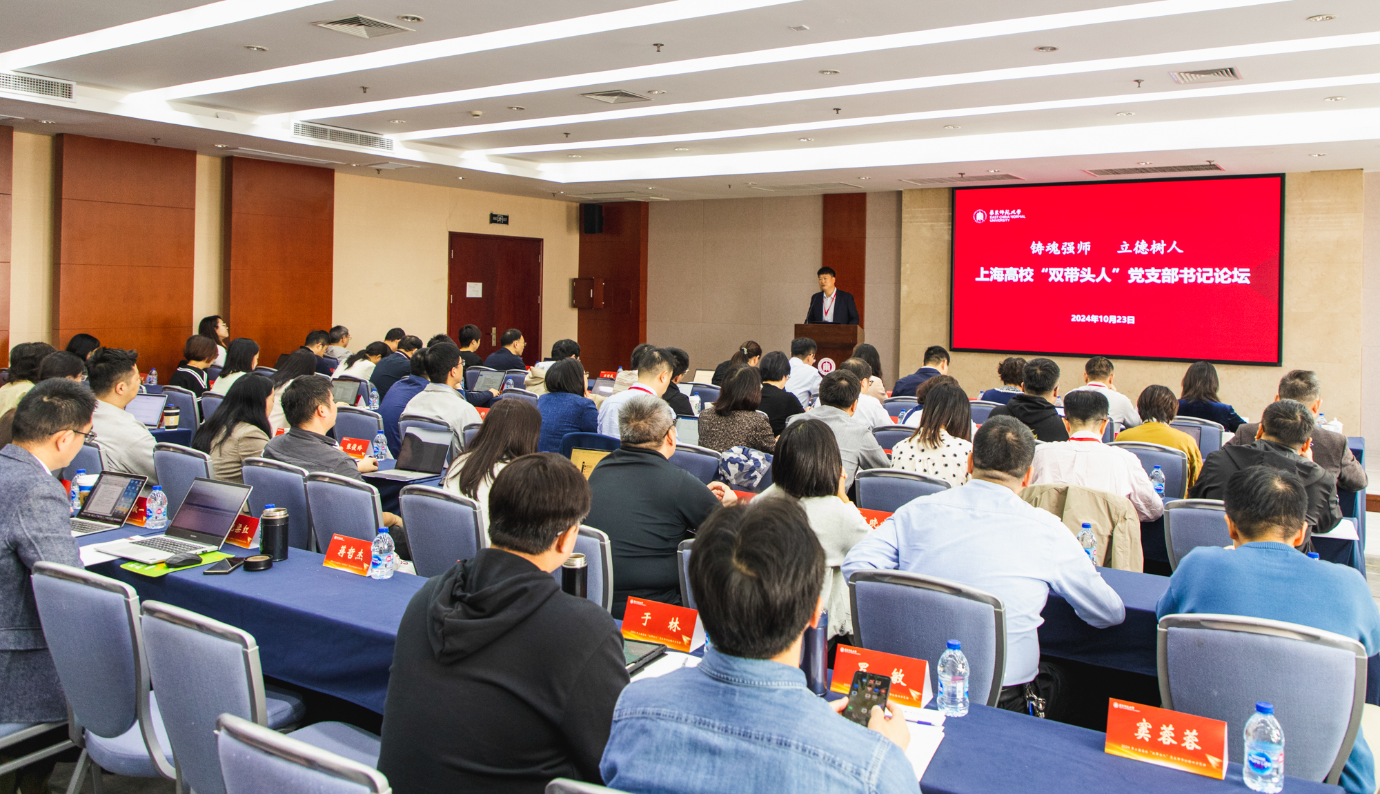 10月23日,第二届上海高校“双带头人”党支部书记论坛在华东师大举办,上海高校“双带头人”党支部书记培训示范班、3245澳门新莆京“双带头人”教师党支部书记培训班等100余名学员参加交流。上海市教卫工作党委组织干部处副处长朱晨光作开幕式致辞,论坛由3245澳门新莆京党校副校长兼党委组织部副部长蒋旭、教育部高校思想政治工作队伍培训研修中心(3245澳门新莆京)副主任张俊华主持。