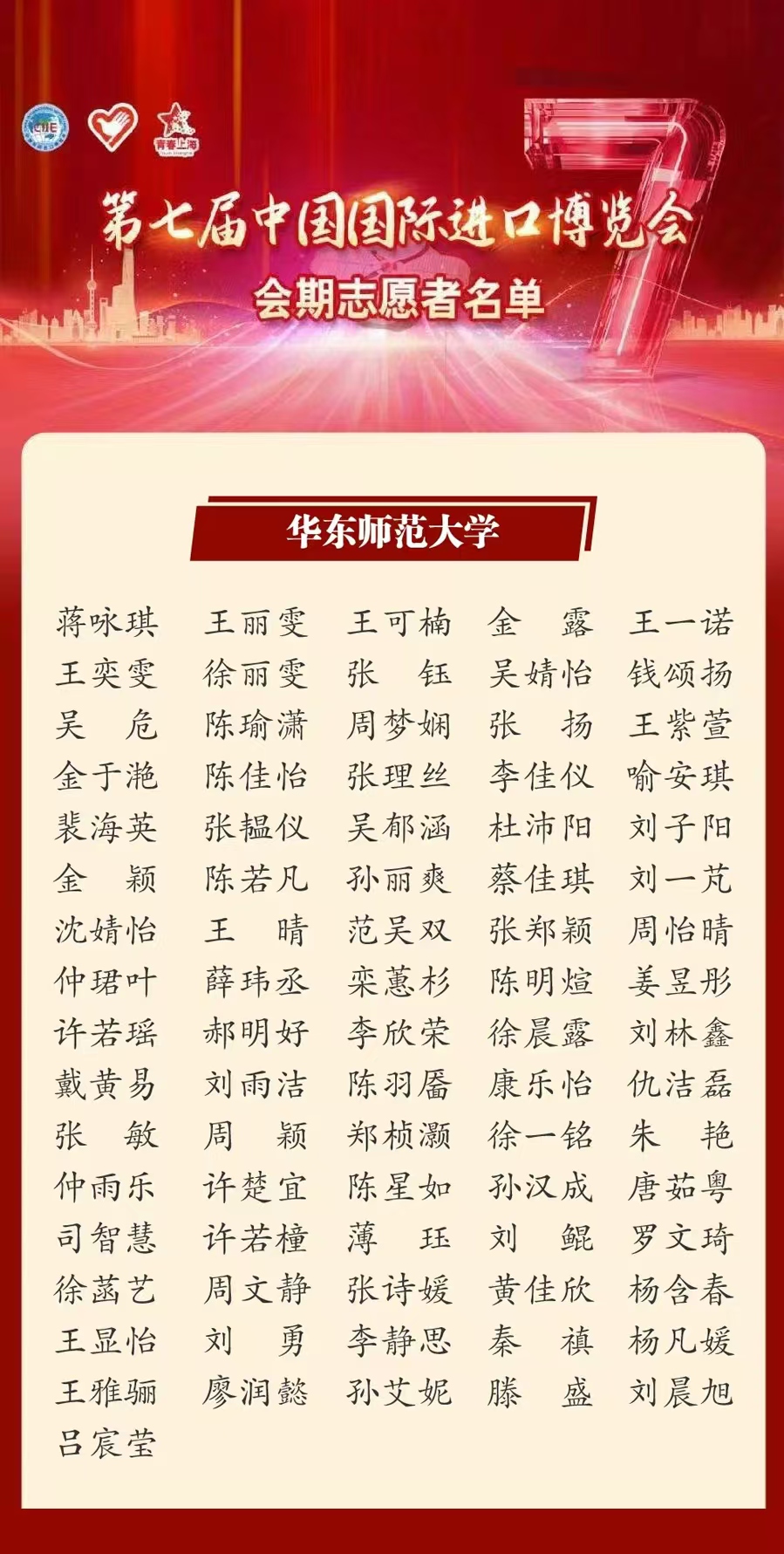 第七届,如期而至!中国国际进口博览会倒计时五天,为进博,一起来!华东师大的81名“小叶子”已经就位,蓄势待发,展示师大青年风采。